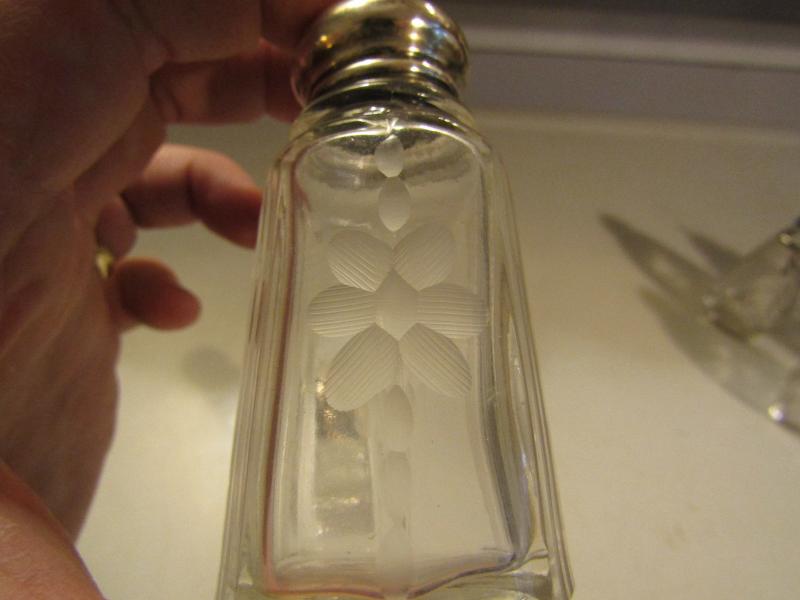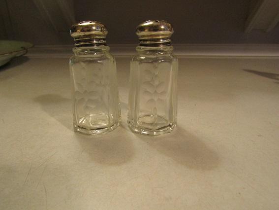 Vintage Etched Glass Salt and Pepper Shaker Set