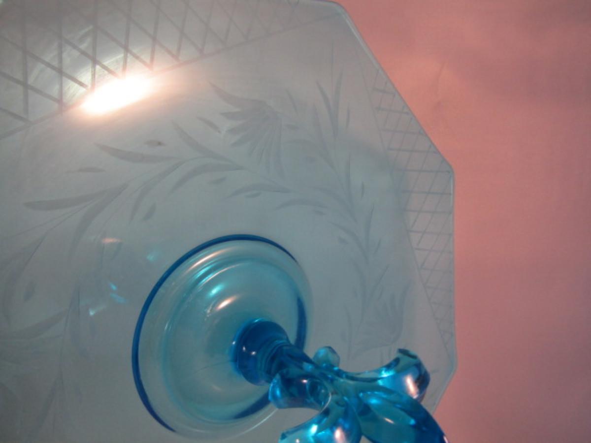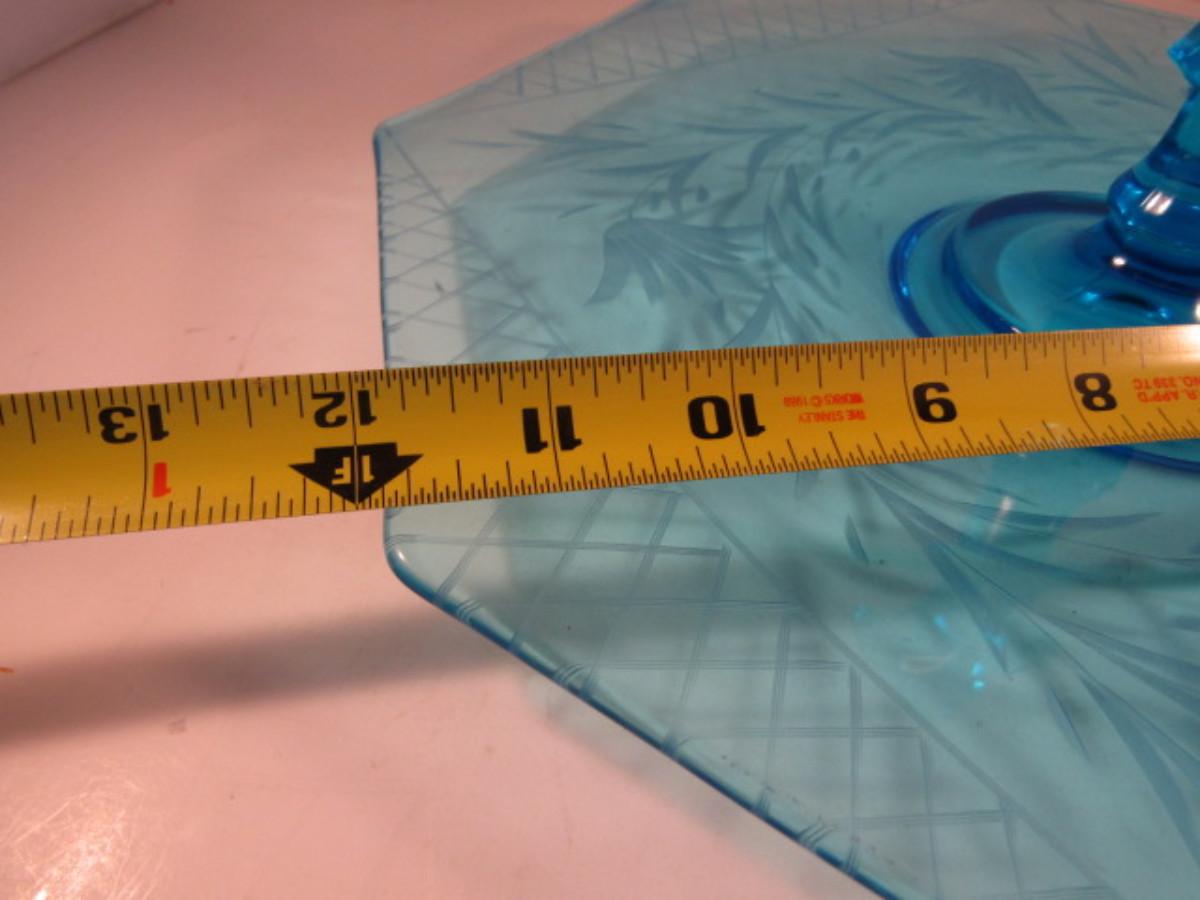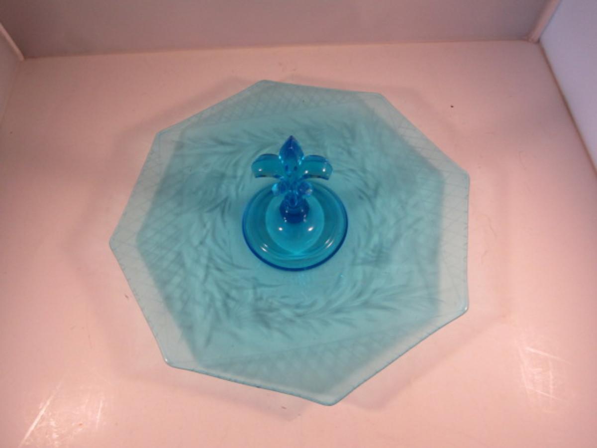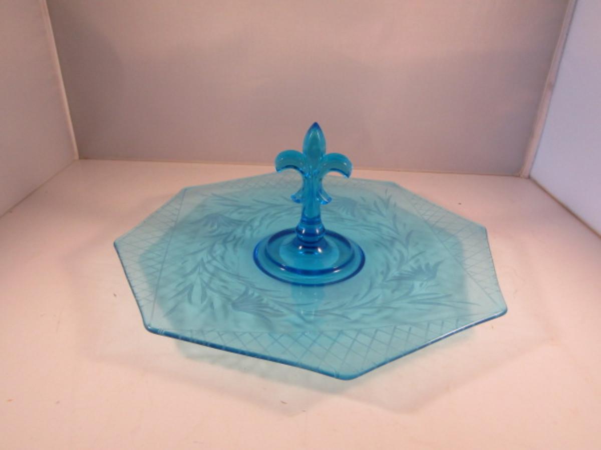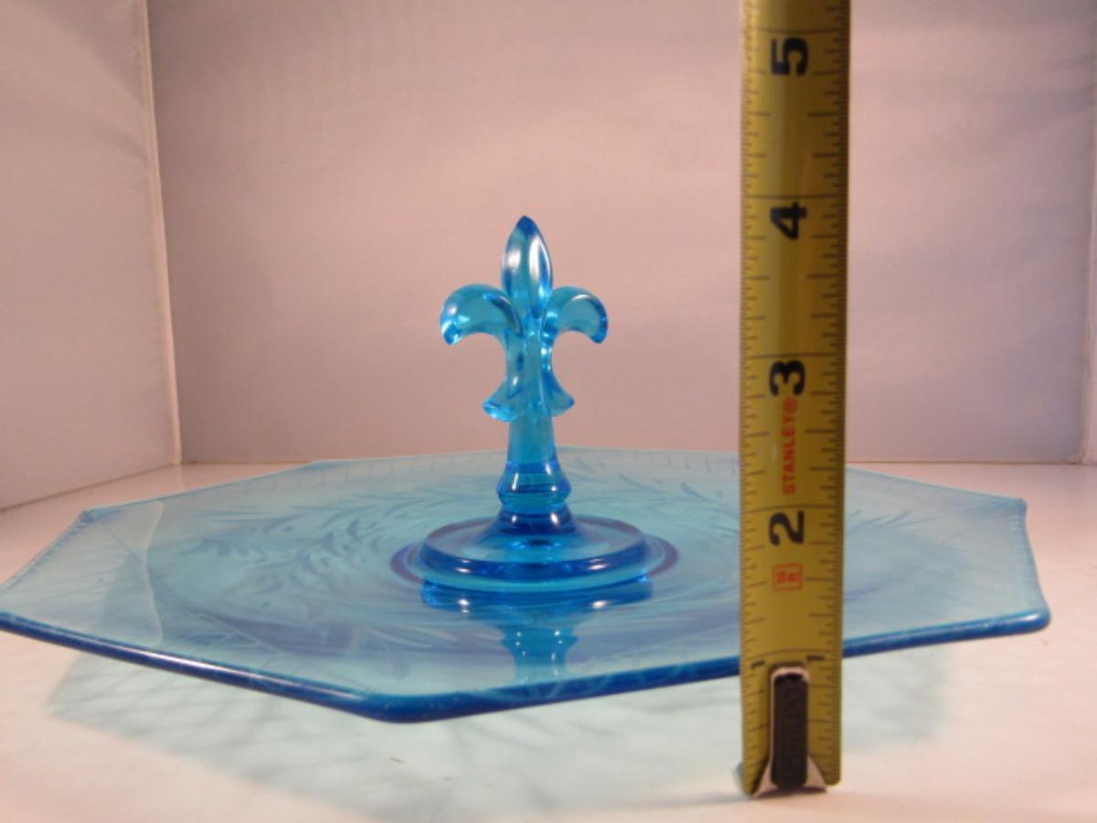 Vintage Etched Glass Serving Plate with Fleur De Lis Center Handle