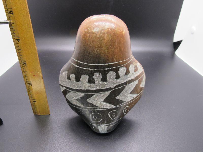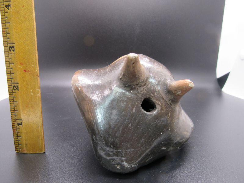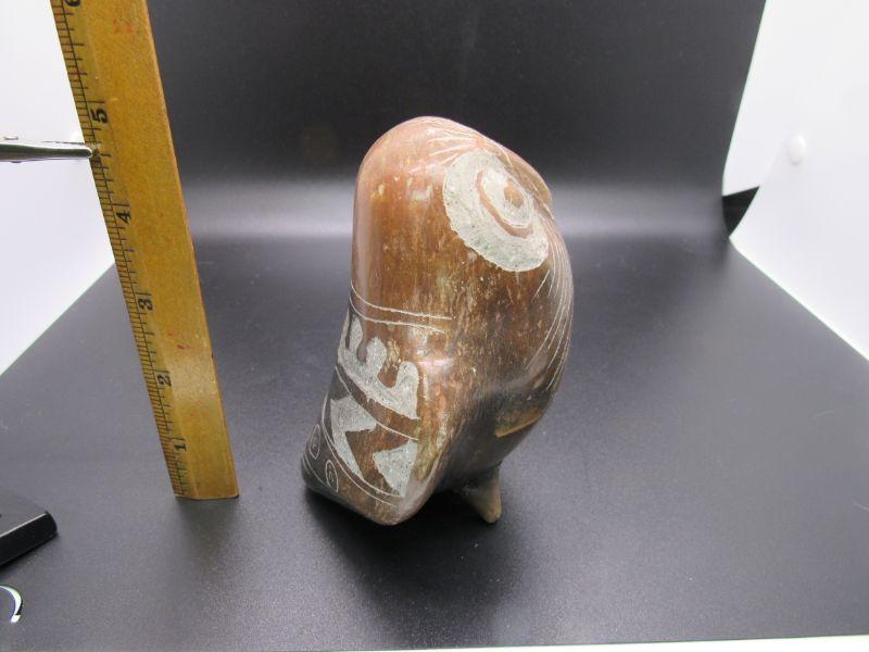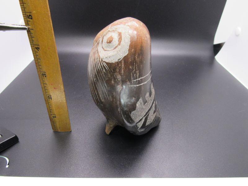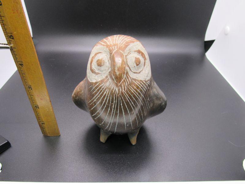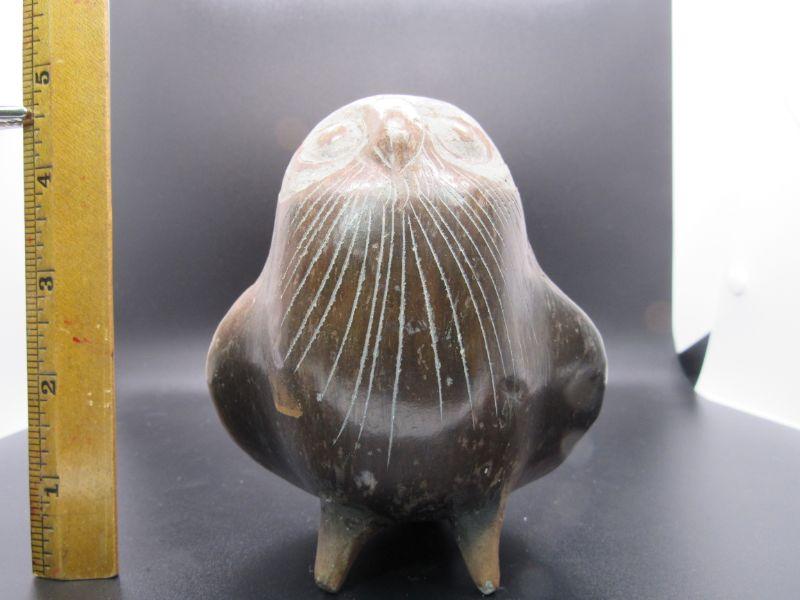 Vintage owl figurine. Clay pottery with etched details. Under 5" size. Unsigned. #001-0027