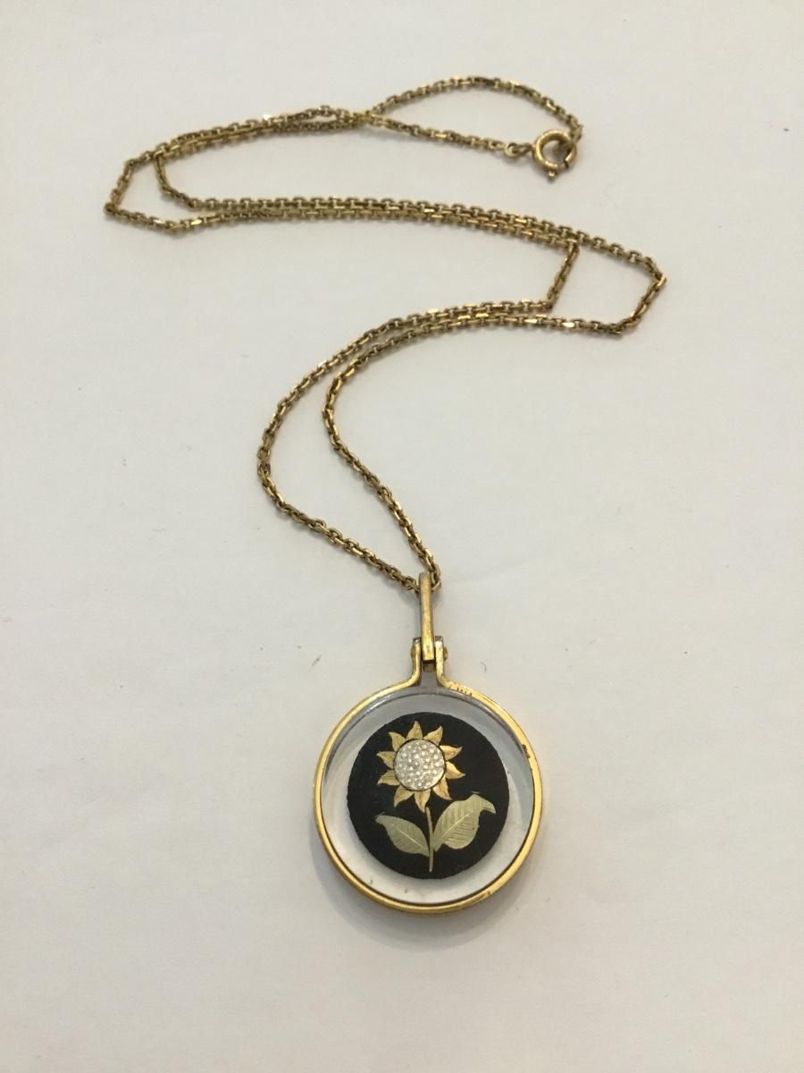 Vintage etched, sunflower, sterling, silver pendant necklace