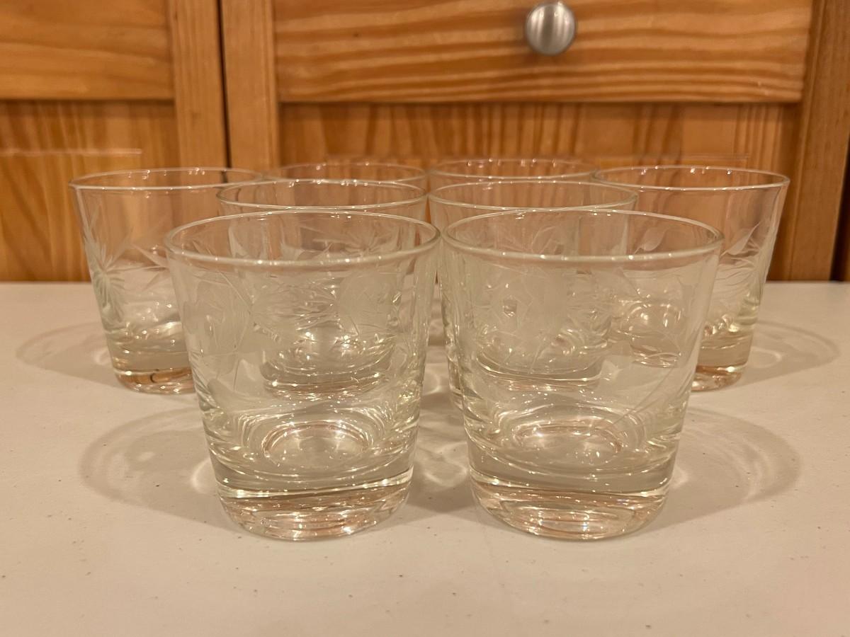 Vintage Etched Whiskey Glasses