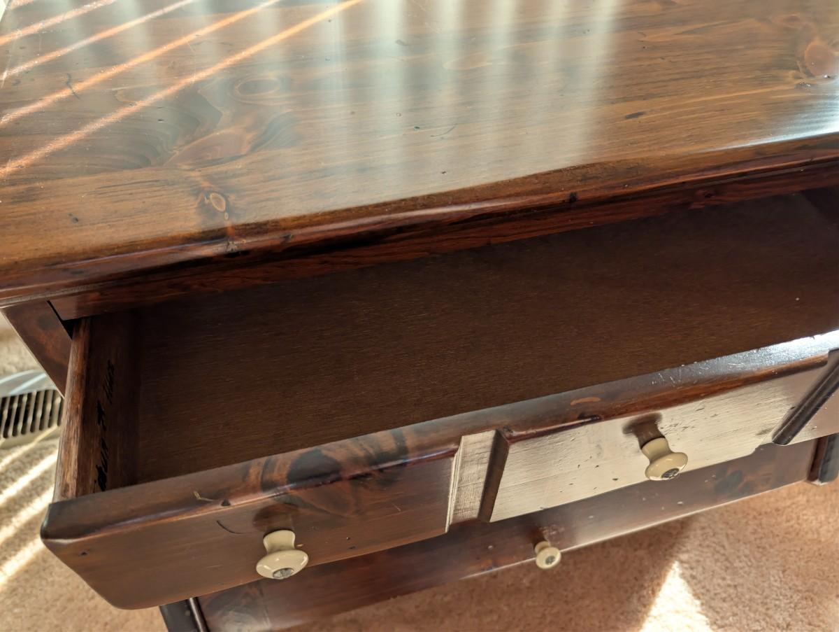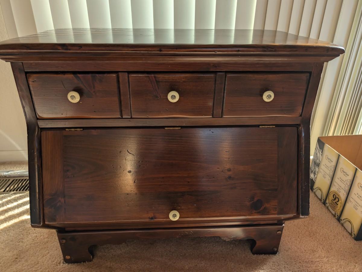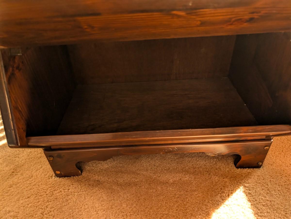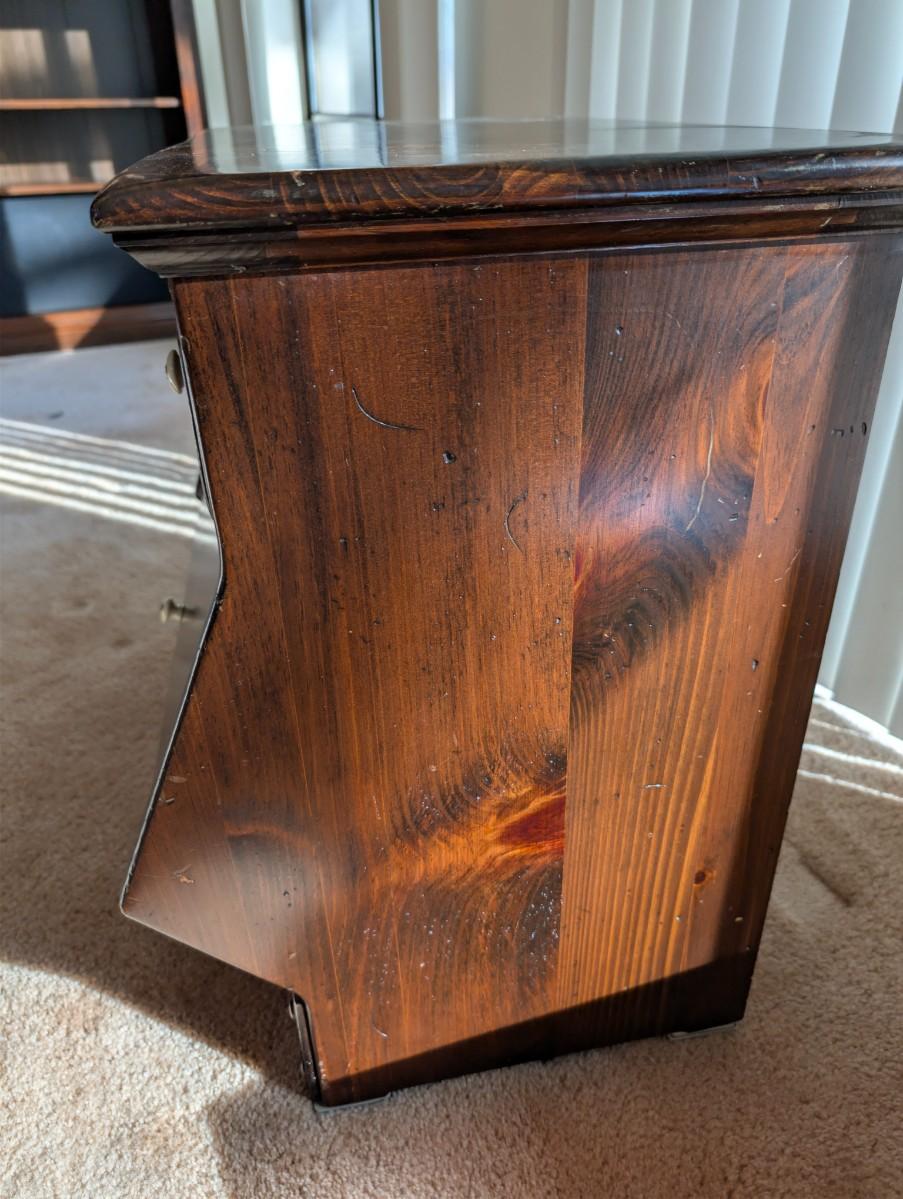 Vintage Ethan Allen Old Tavern Pine Storage Side Table w/ Mahogany Finish
