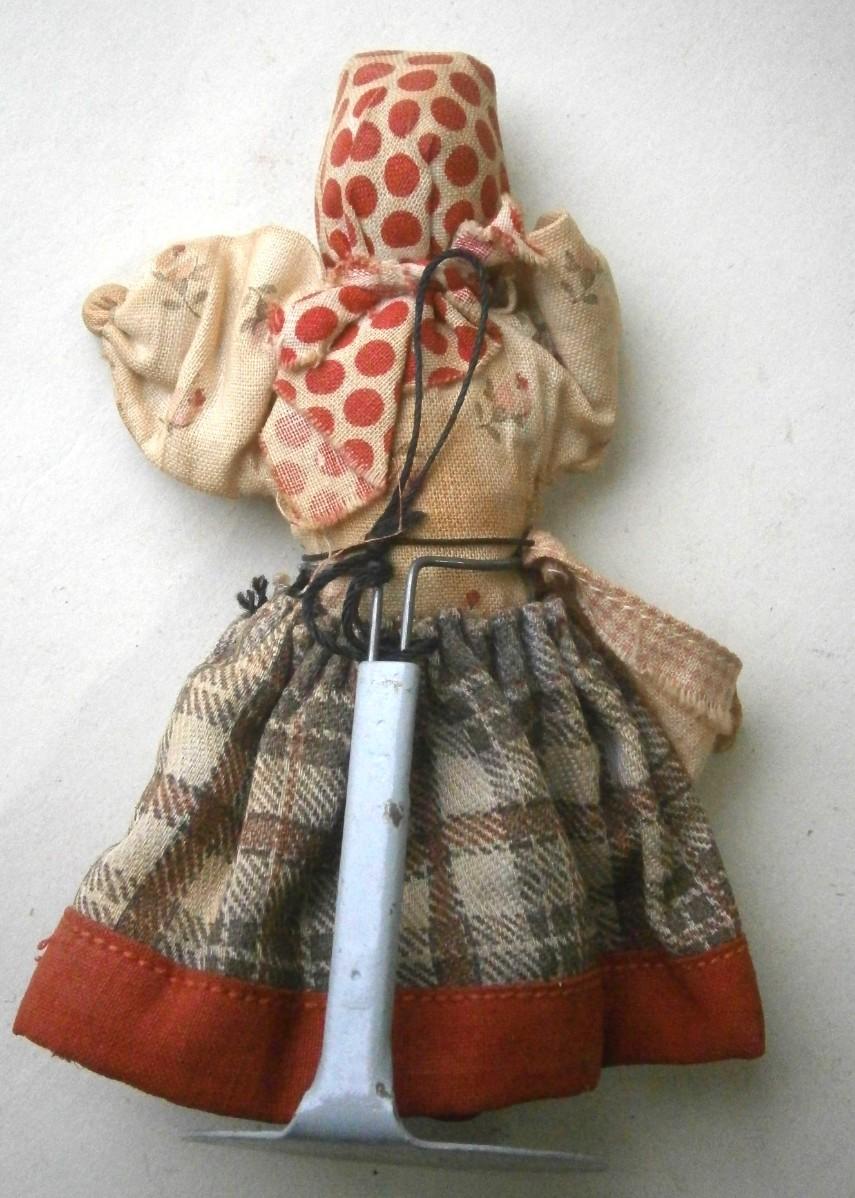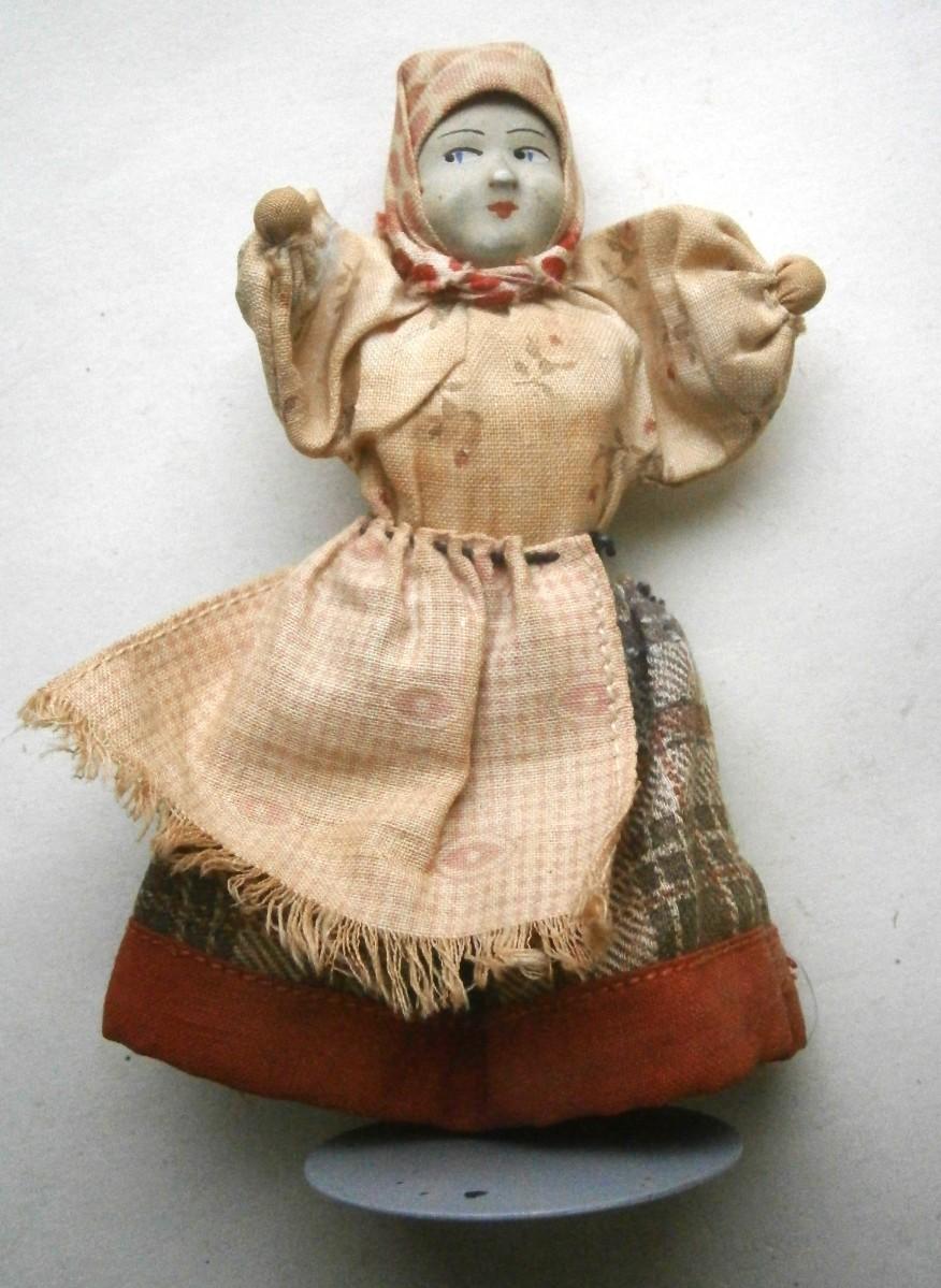 Vintage Ethnic Doll in Native Outfit, 4 1/2 in. tall, porcelain head, comes with stand.