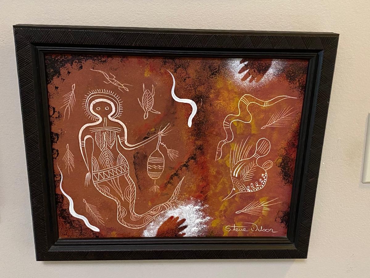 Vintage Ethnic Styled Hanging Wall Art Signed. Looks like carved etching art. 14x17 size.
