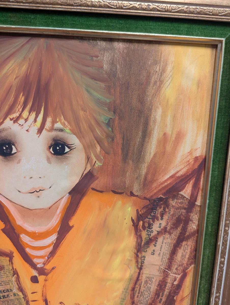 Vintage Etienne Boy With News Paper Original Watercolor Painting