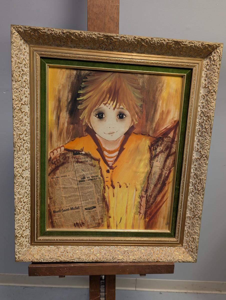 Vintage Etienne Boy with News Paper Original Watercolor Painting