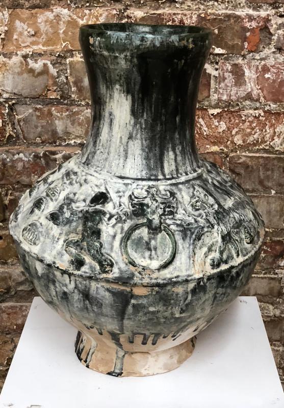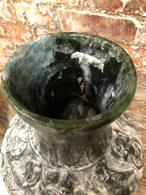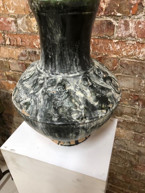 Vintage Etruscan Style Vase 14" tall heavy stoneware with glaze