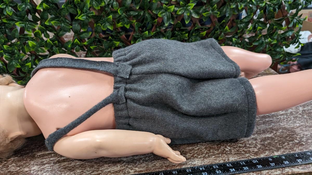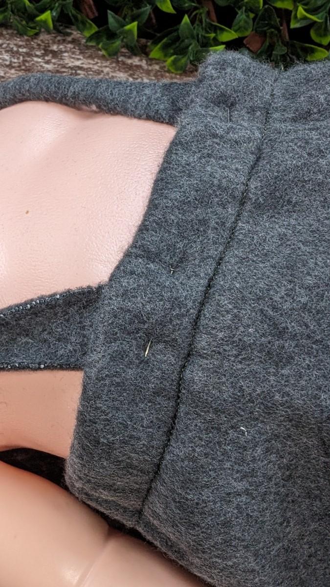This is a Vintage Eugene Doll 1978 53100 Jacket Gray Handmade Shorts Overalls Pinned.