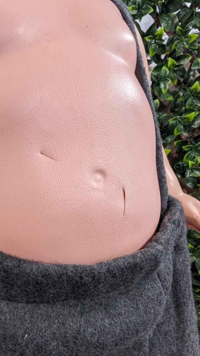 There are some damaged spots on the stomach and left shoulder of the body. Please review all photos.