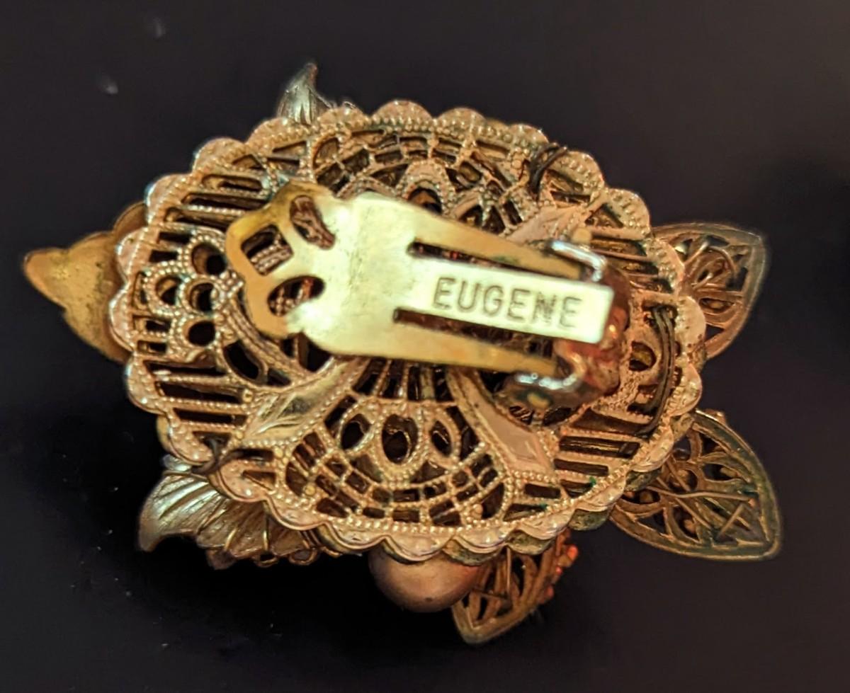 Vintage Eugene gold tone clip earrings Floral and Leaves motif 1952-1962