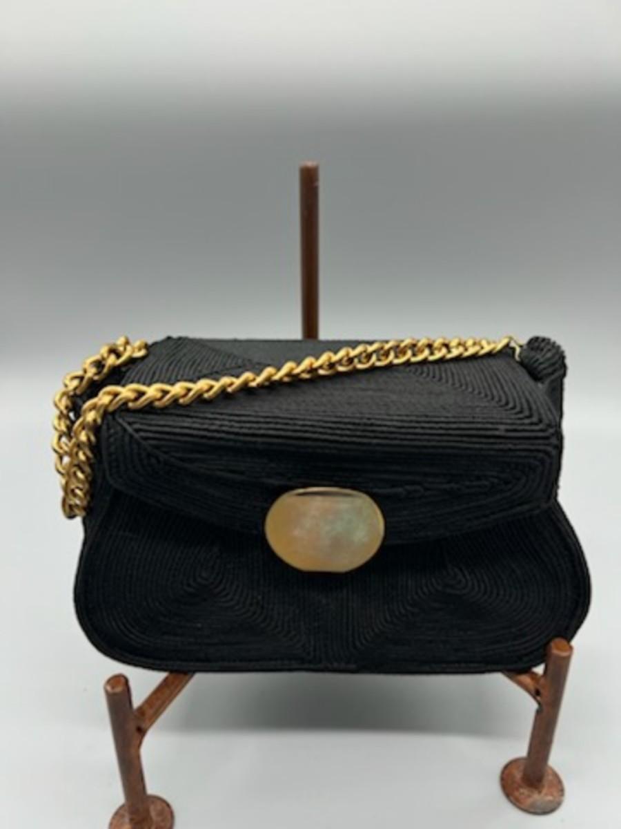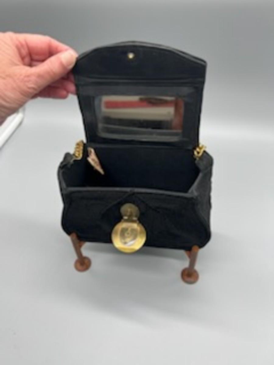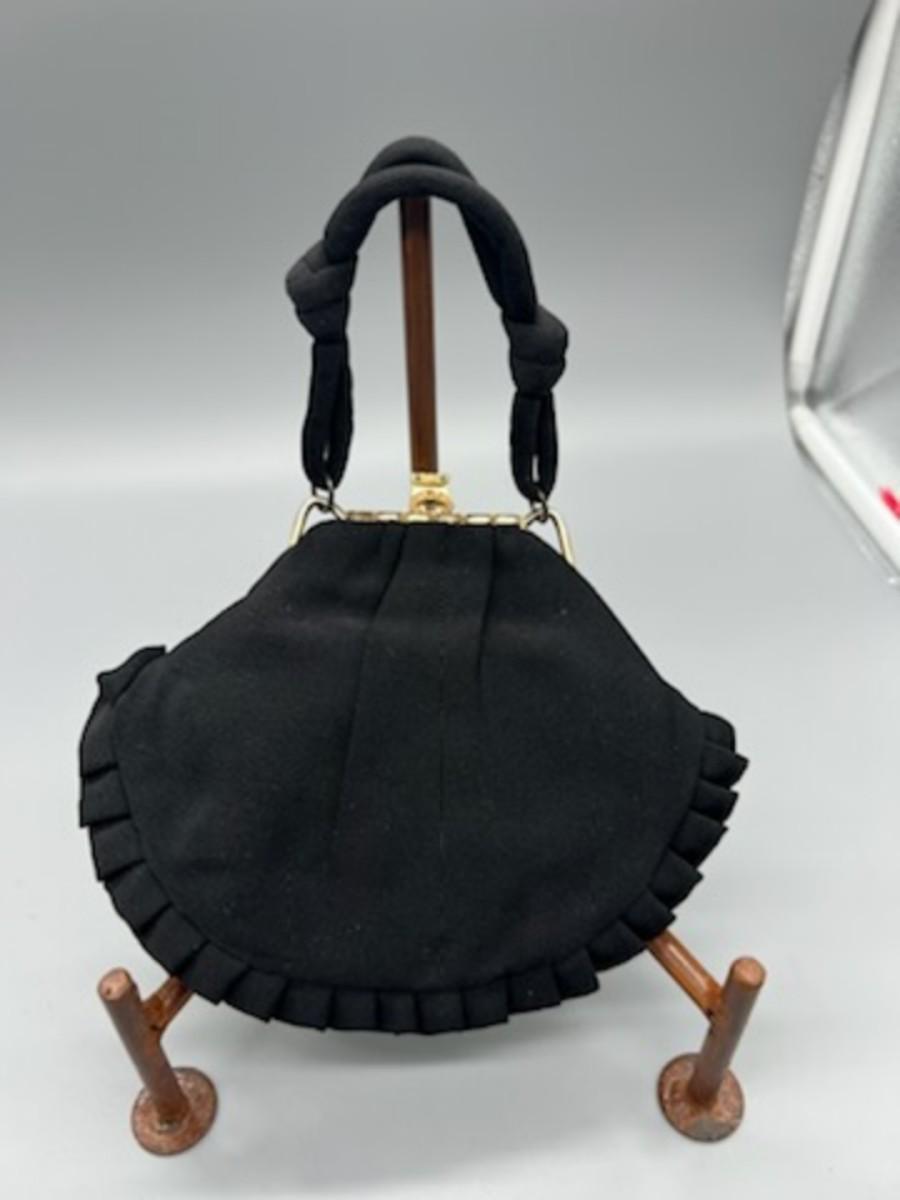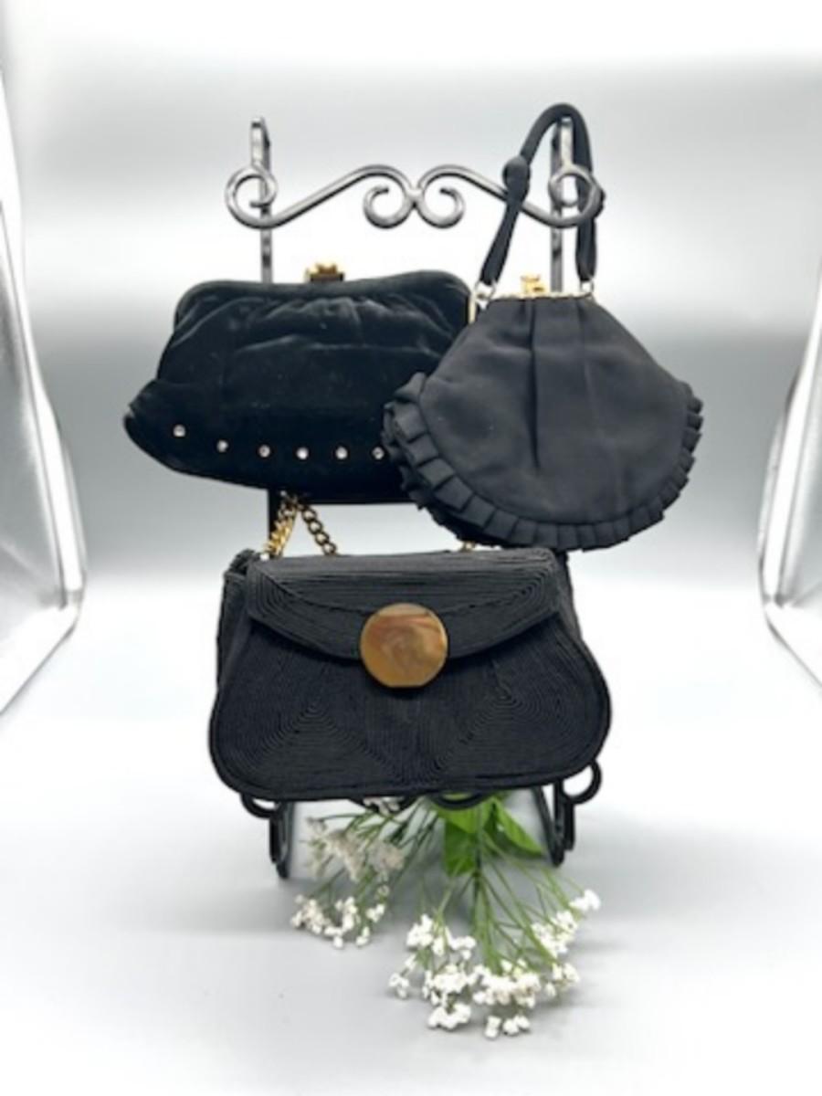 Trio of little black bags 1930s era, 1 clutch and 2 with handles. Very nice condition.