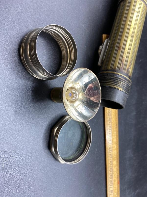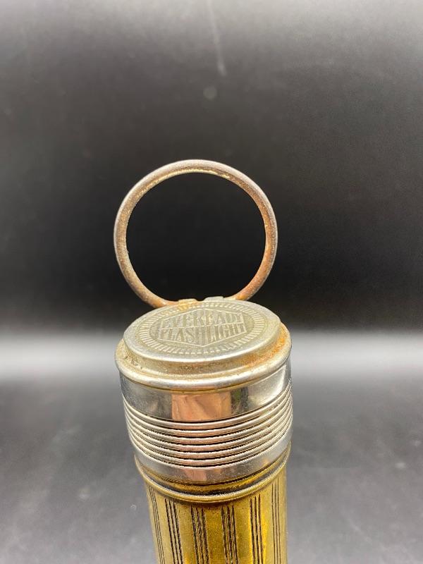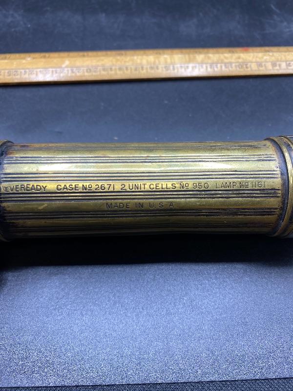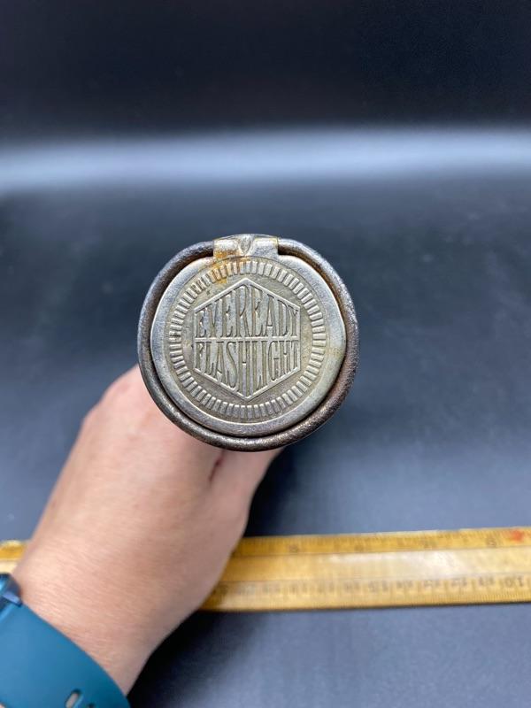 Vintage metal Eveready Flashlight. Case #2671. Good Condition. Untested but the connections are clean. Glass lens has minimal scratches. About 7" in length.