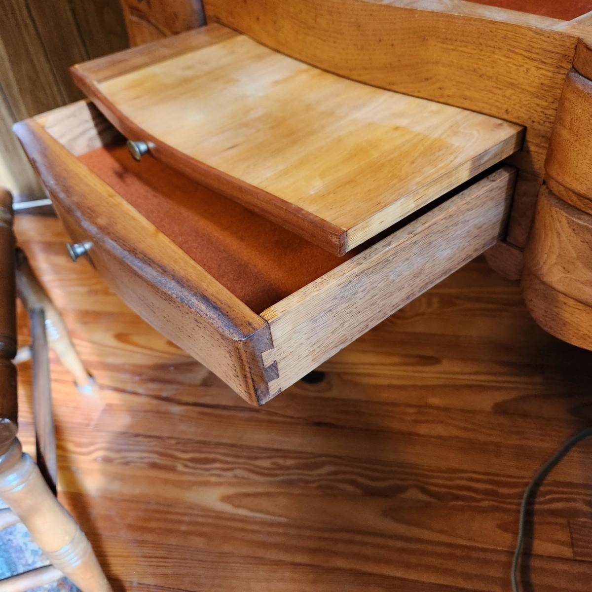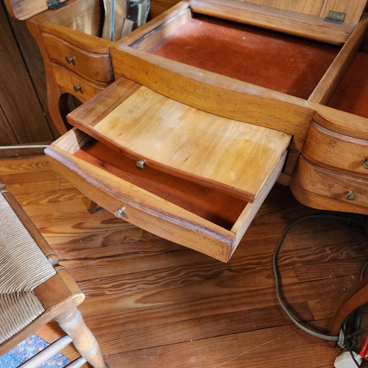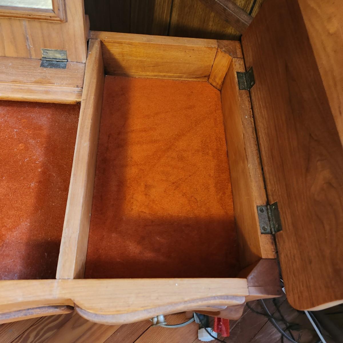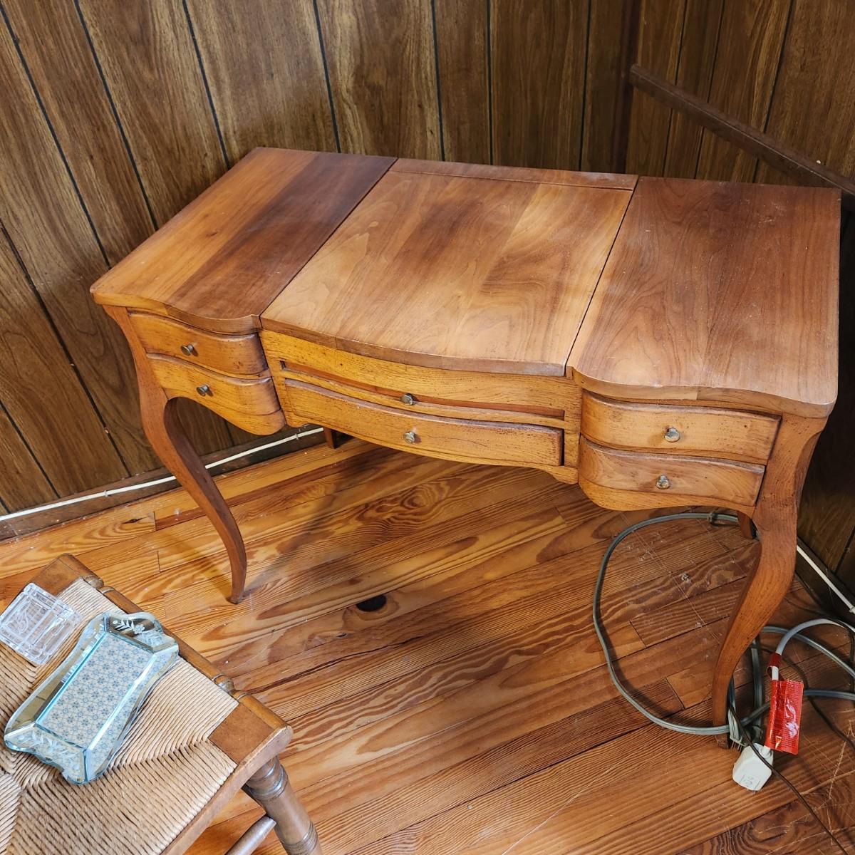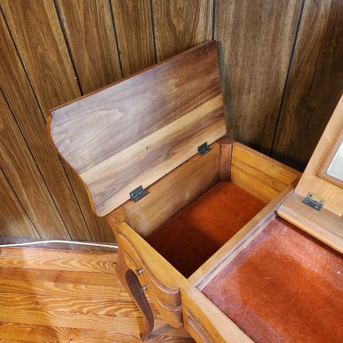 Vintage Exotic Wood Vanity & Chair  36x19x29 (57" w sides open)