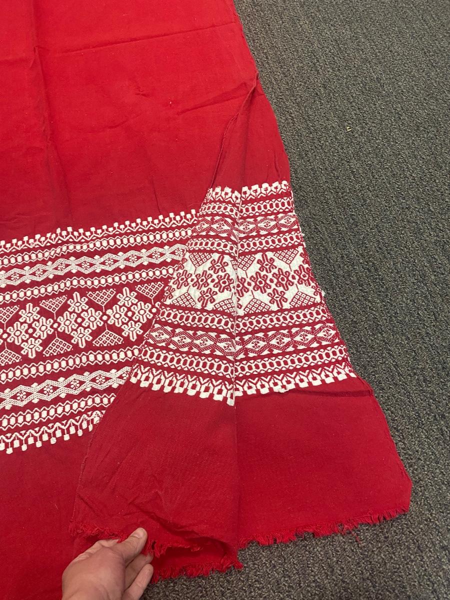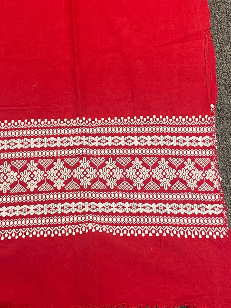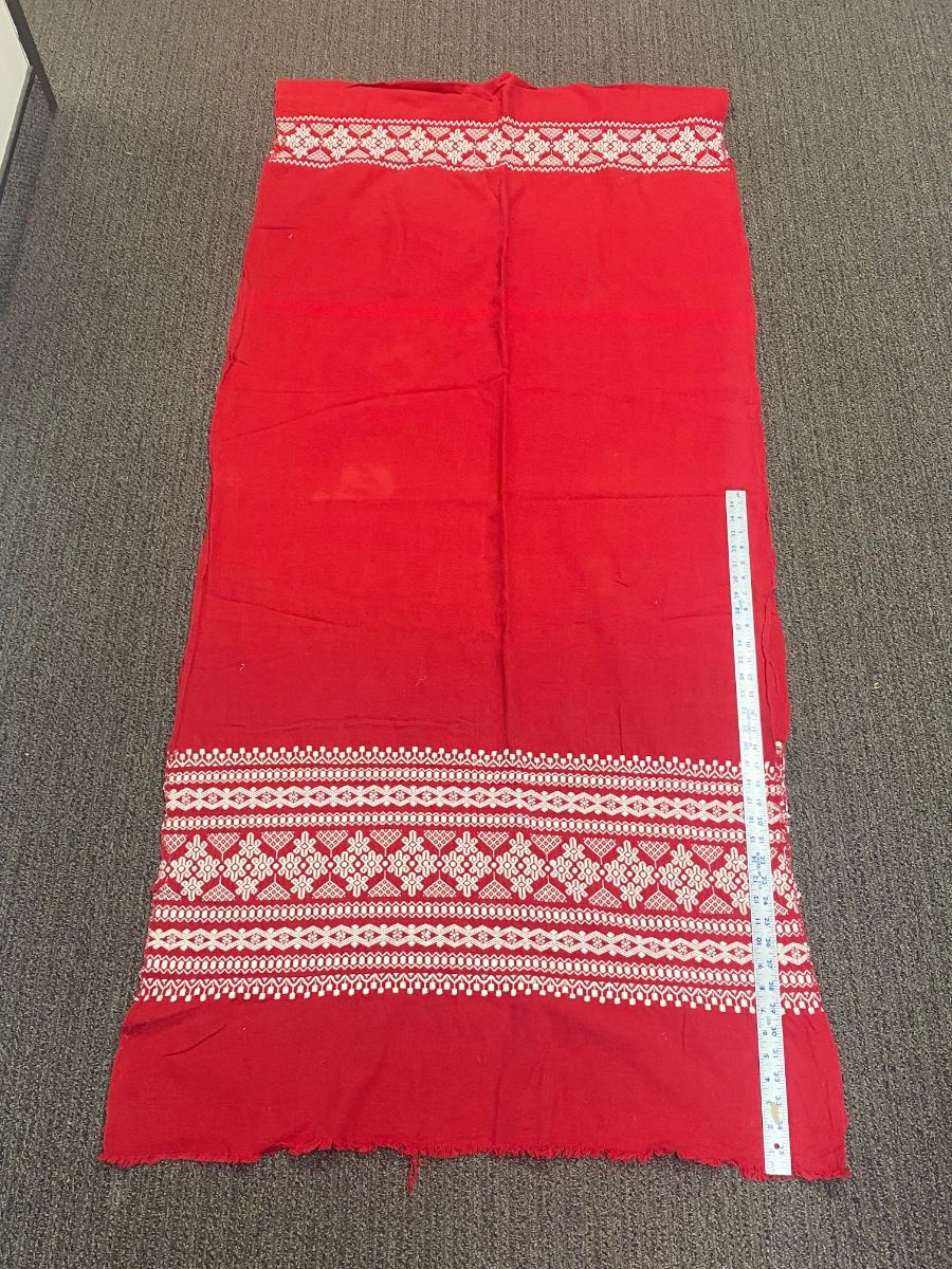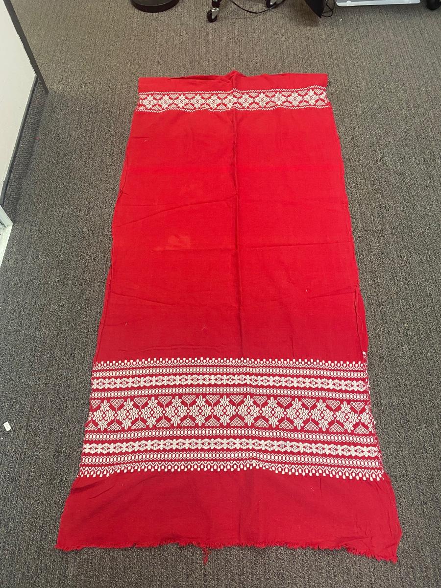 Vintage Extra Long Red Table Runner Cloth W White Geometric Floral Embroidered Design