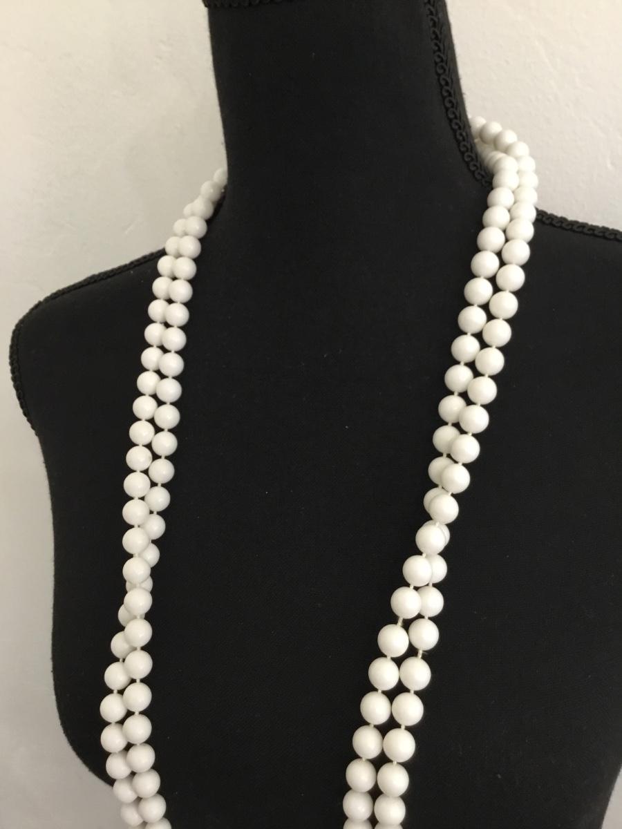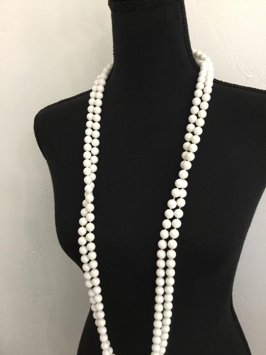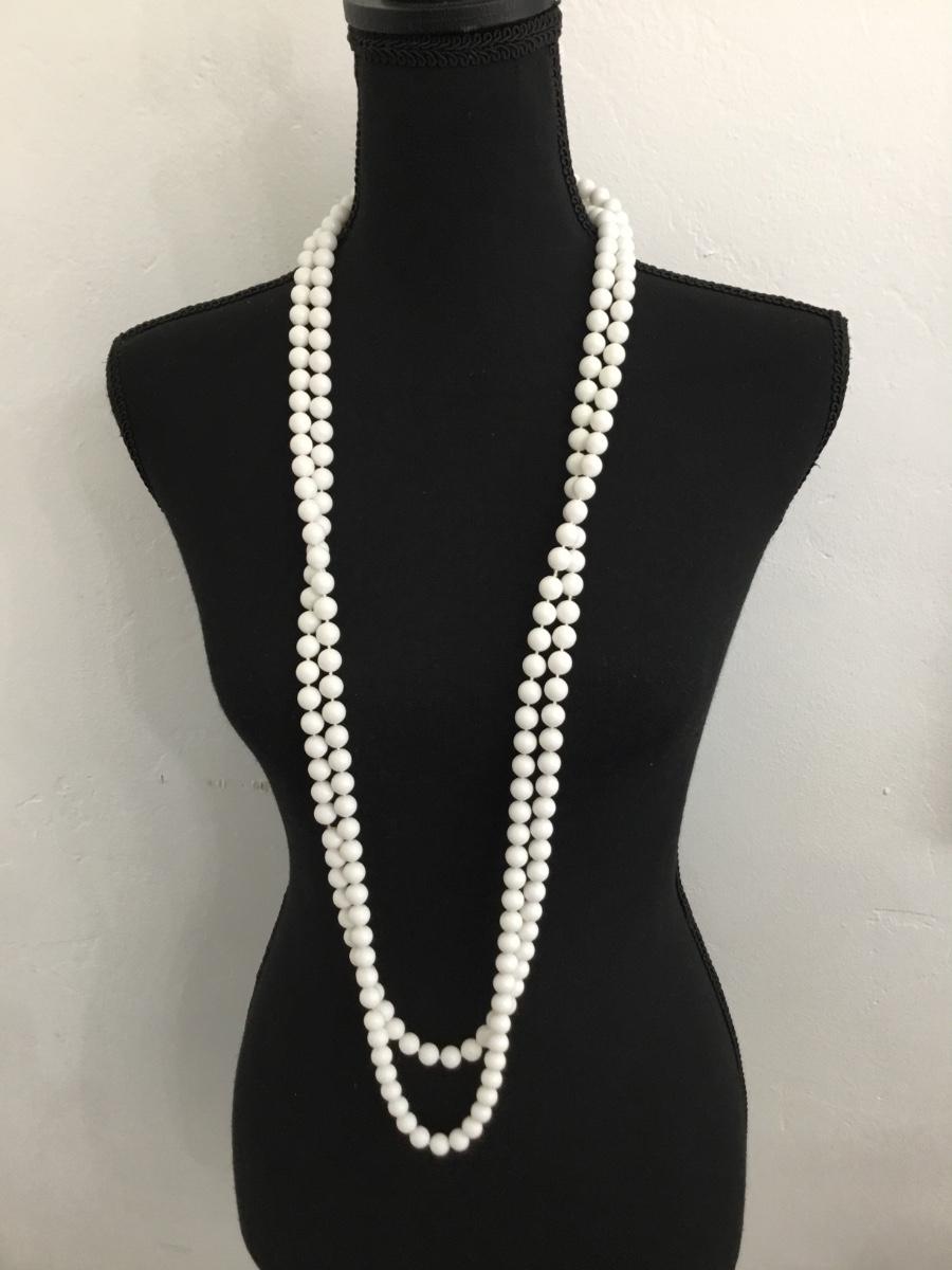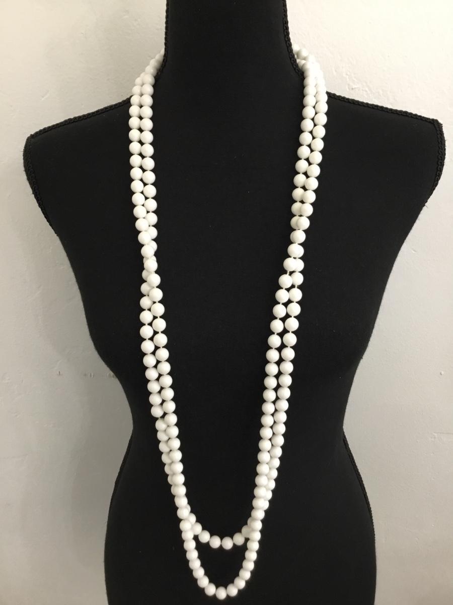 Vintage extra long white beaded necklace