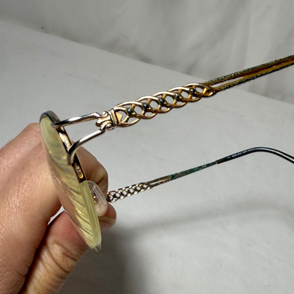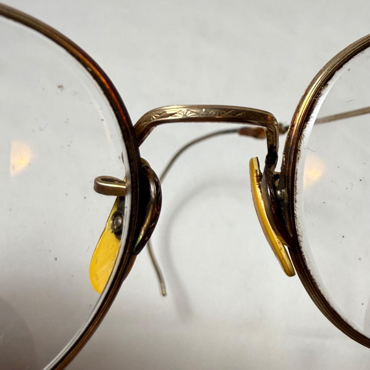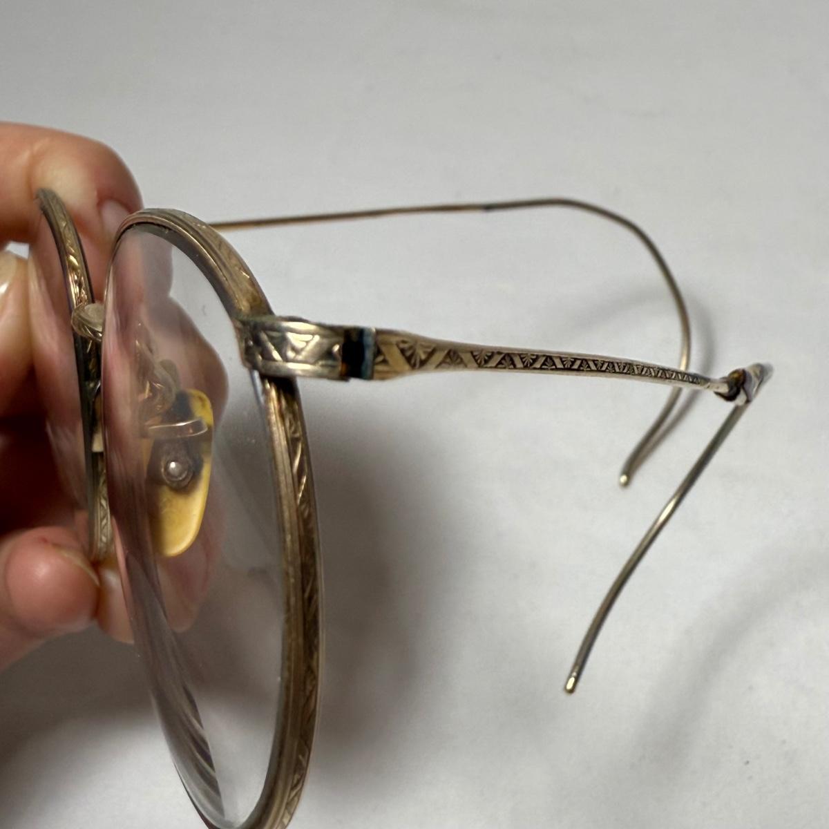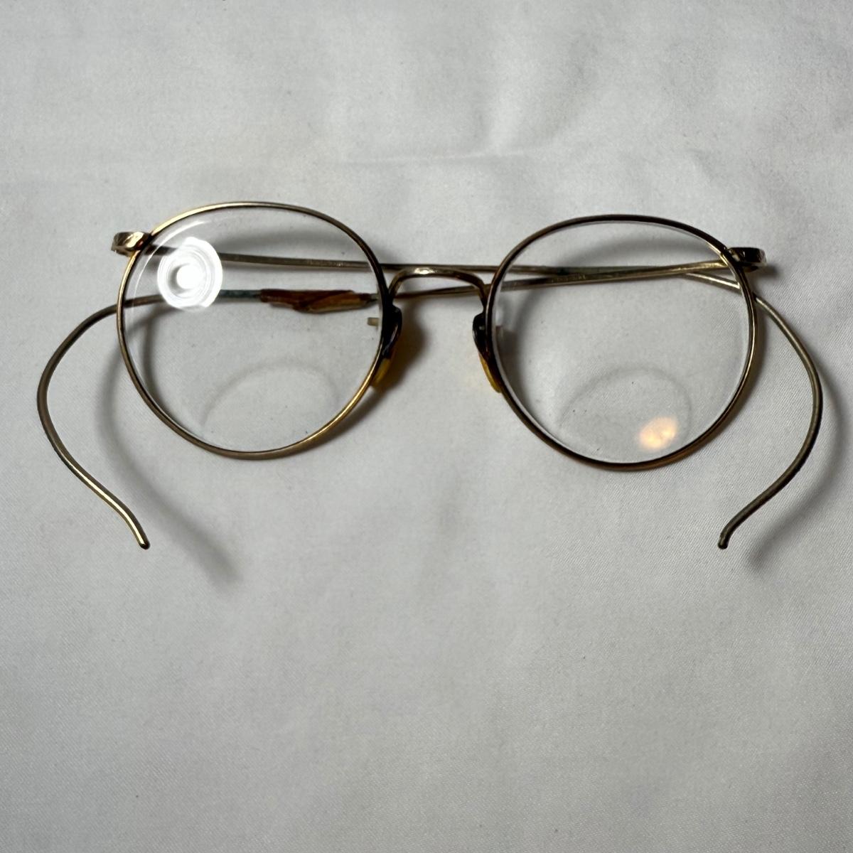 Seven pairs of vintage eyeglasses. All have prescription lenses and metal frames, six of which are gold-colored and the last is a darker silver. Please see photos for all marks found on the glasses. The antique-style glasses are marked as 1/10 12K GF. It looks like they have something wrapped around one of the temples as a past repair. One glasses case is included. Please note that some pairs have some signs of oxidation, most appear to be cleanable.