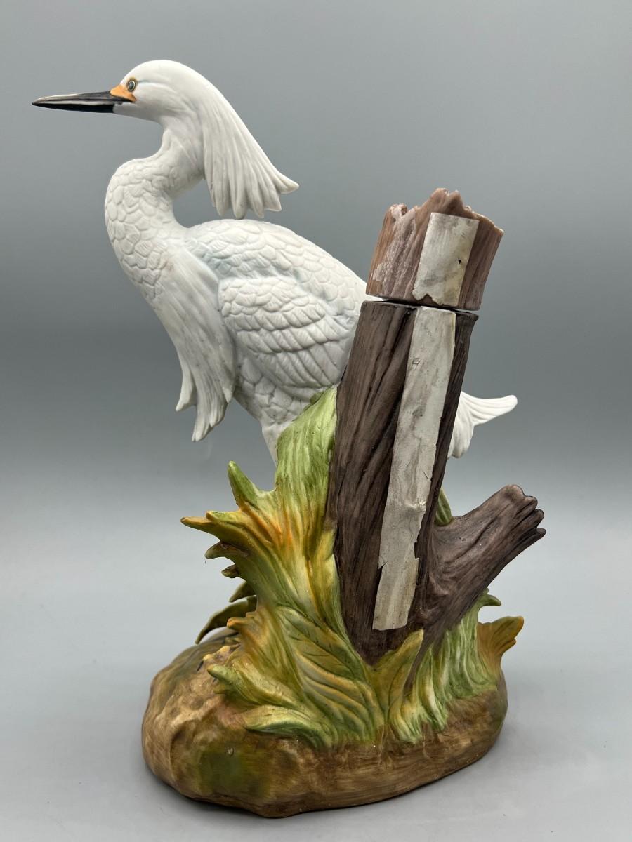 Vintage Ezra Brooks Porcelain Crane Liquor Bottle Decanter
