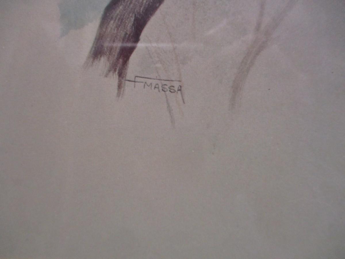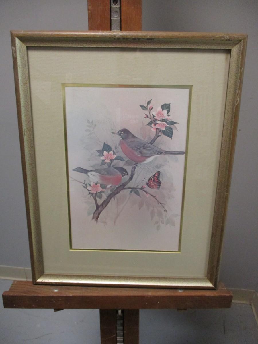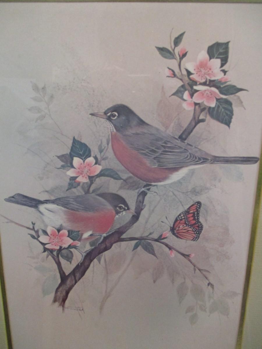 Vintage F. Massa Artwork Print Birds Perched On Tree Approx 15" x 19 1/2"