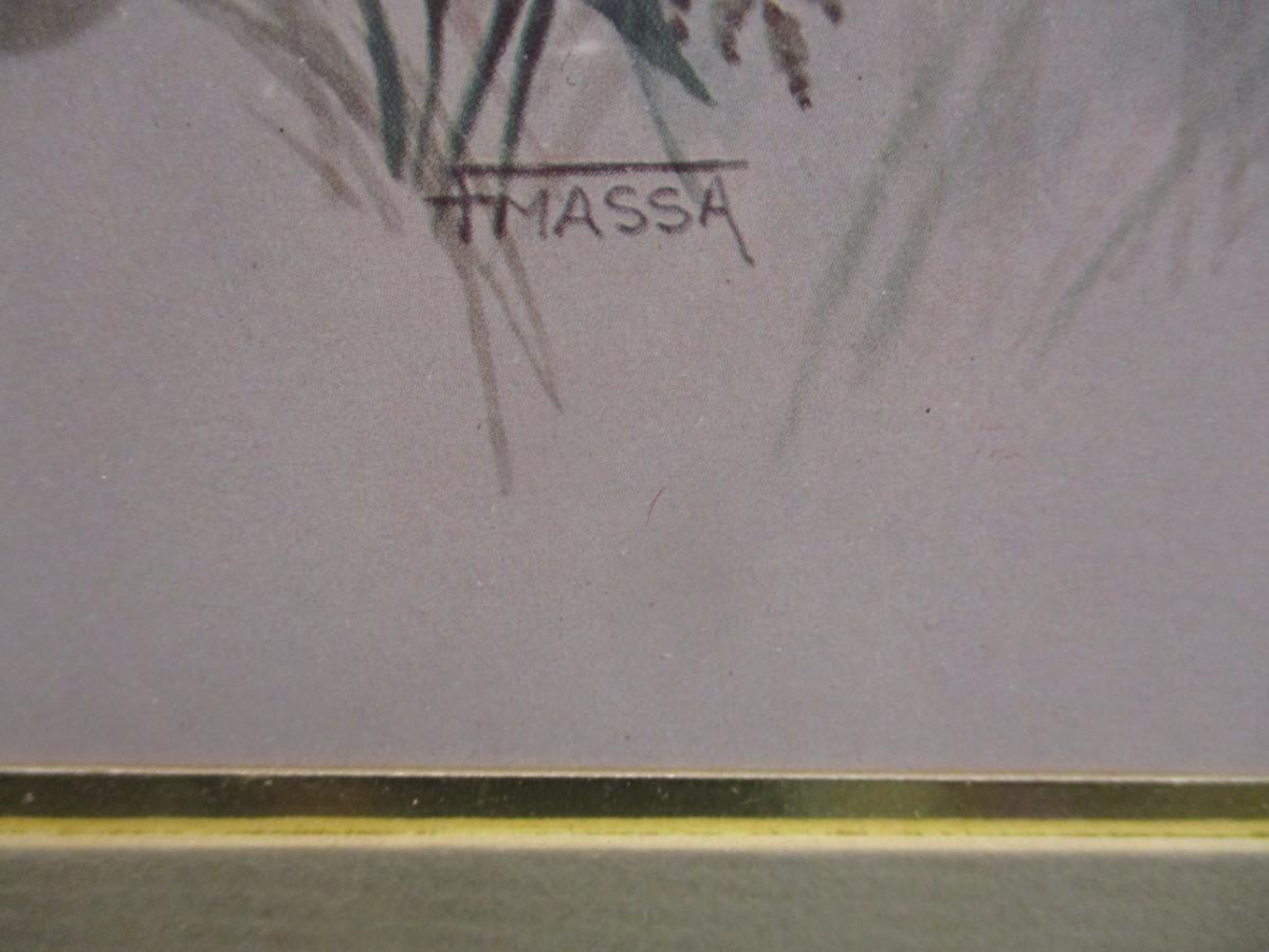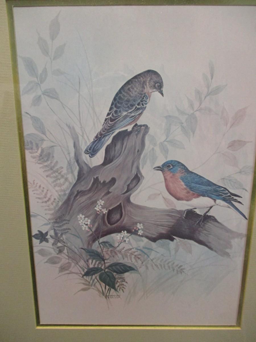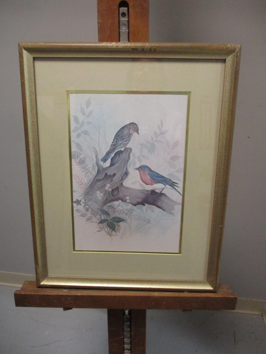 Vintage F. Massa Artwork Print Birds Perched On Tree Approx 15" x 19 1/2"