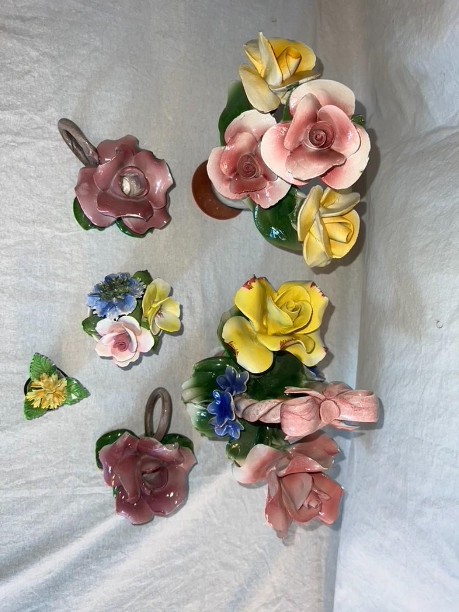 Fabar Capodimonte Hand Painted Porcelain Flowers Made in Italy