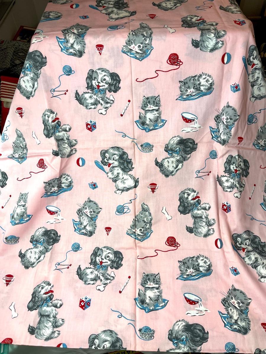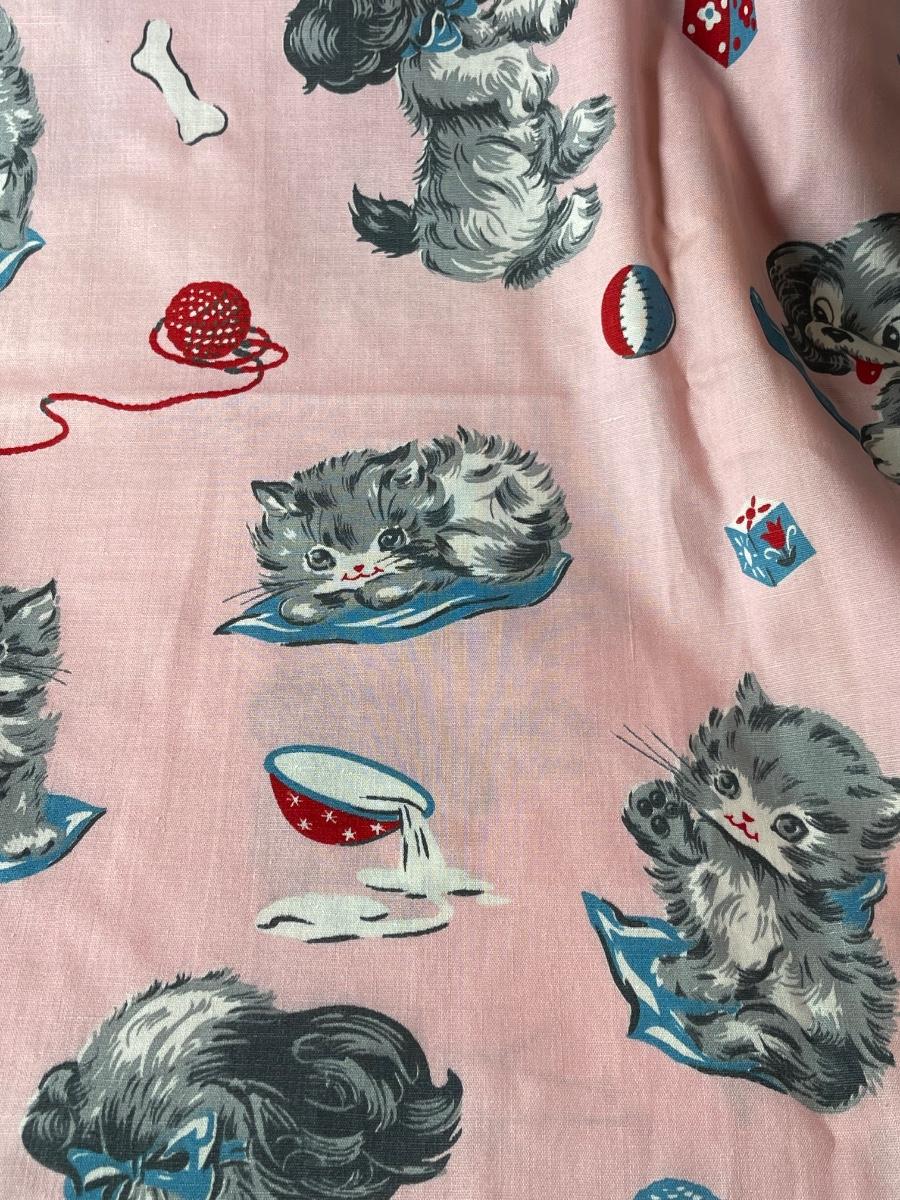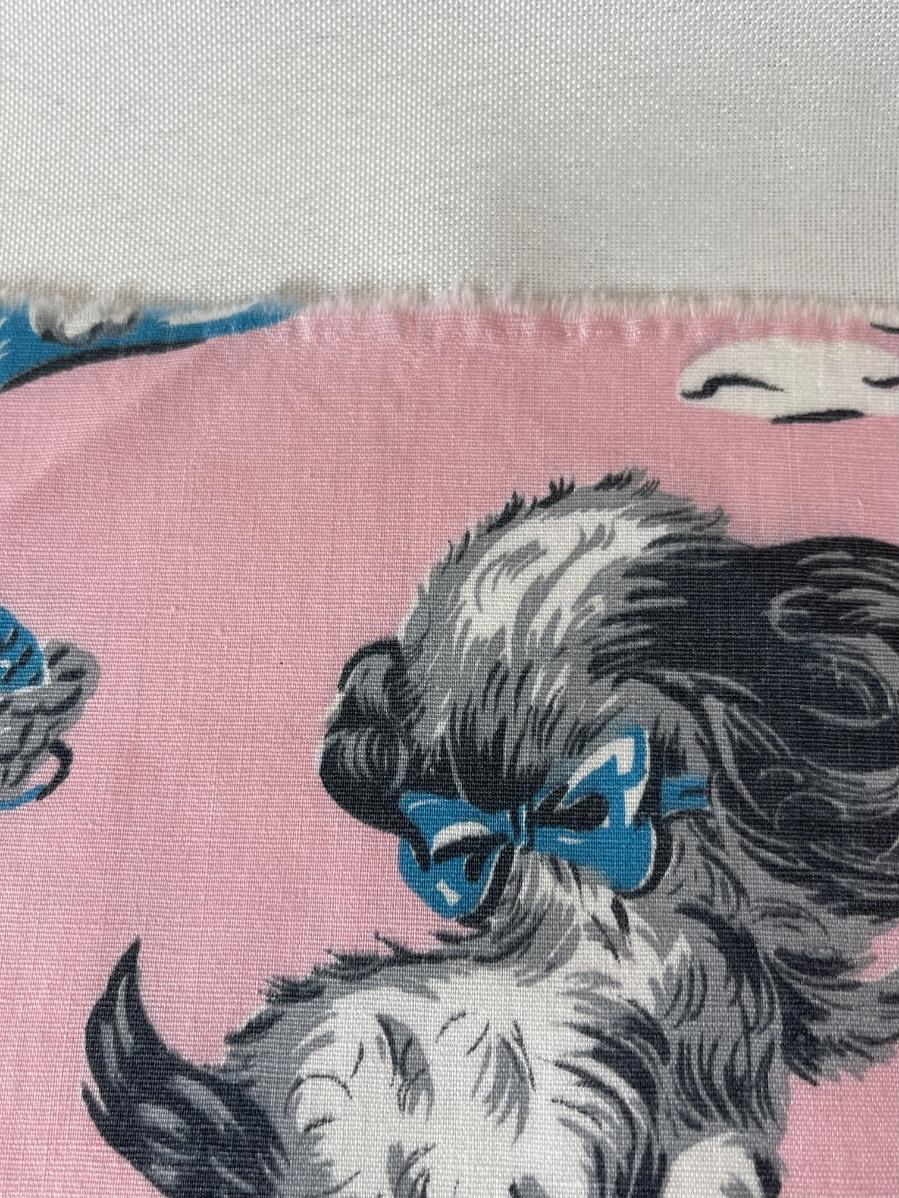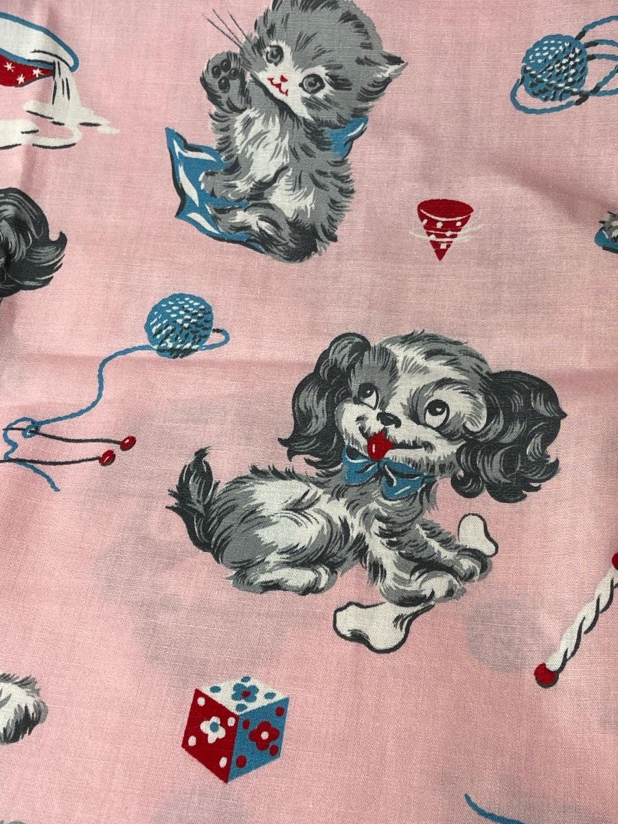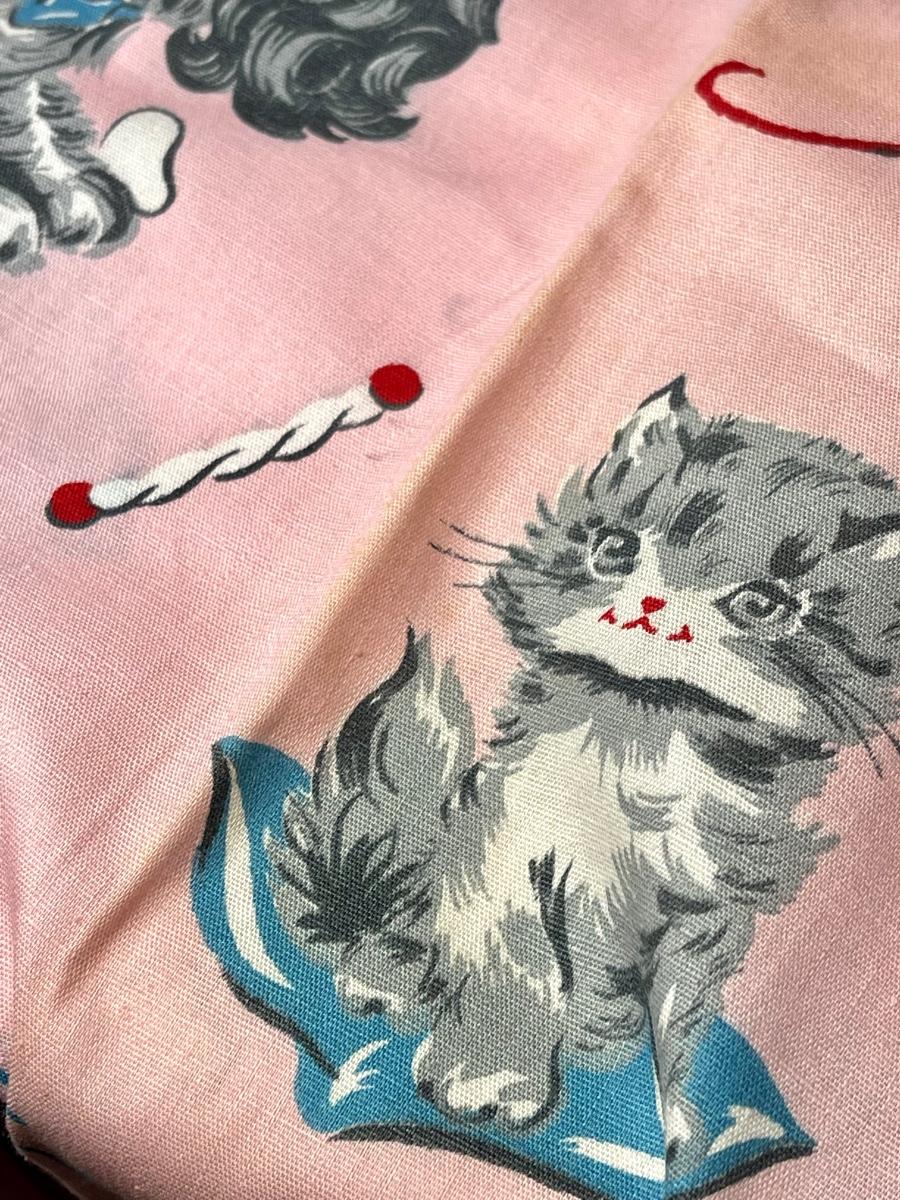 This is so cute!! There are spots of browning or staining that I pictured. These could possibly be laundered out. It’s certainly worth a try! This is such a sweet piece! Measures 35”X72”
