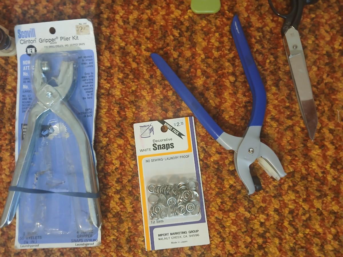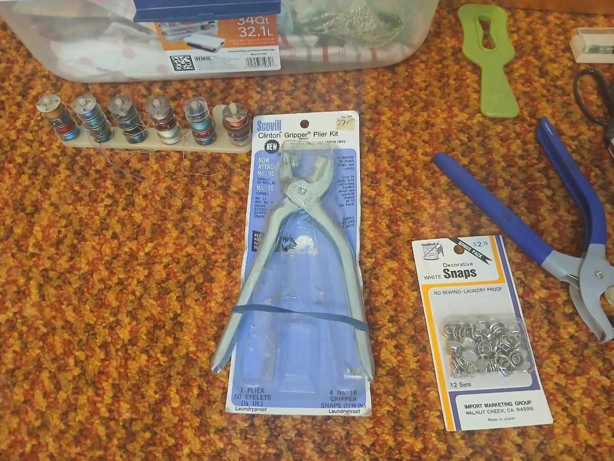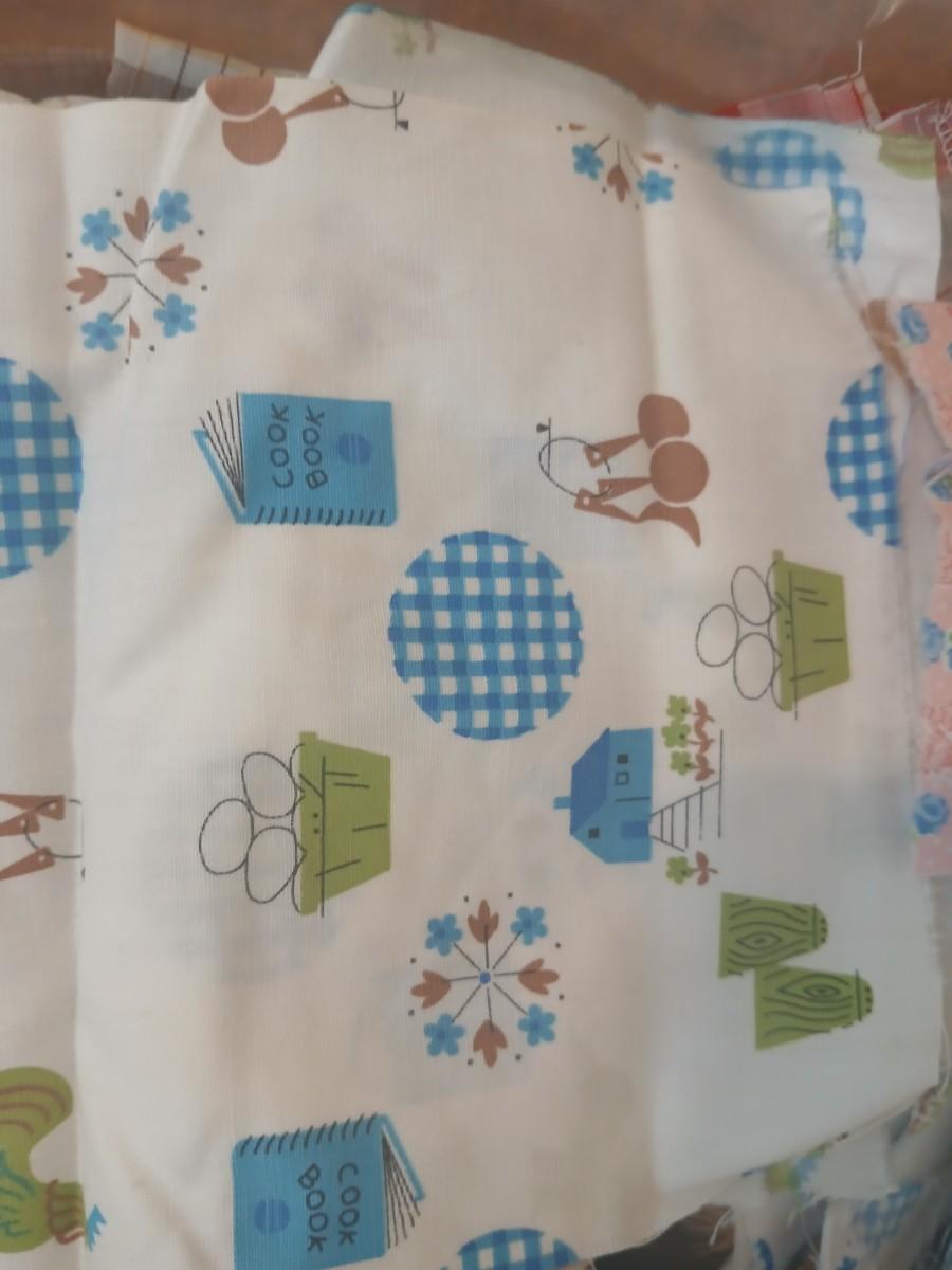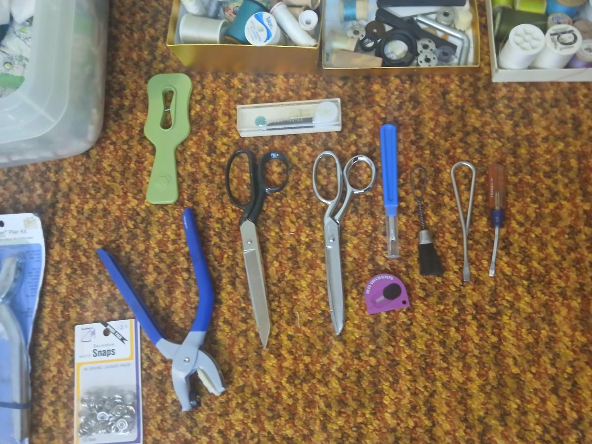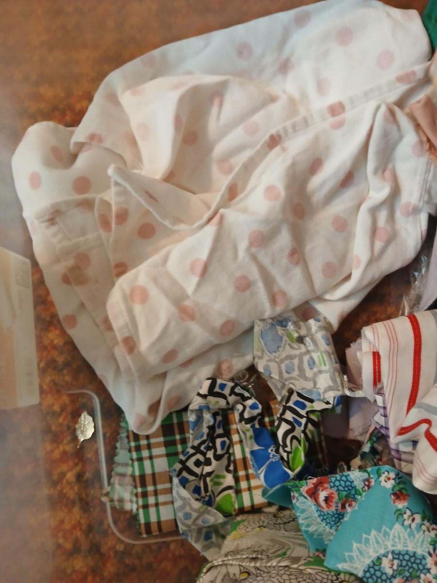 Vintage fabric scraps & sewing items - thread - needles - patches - Hem facing -tools of the trade and more