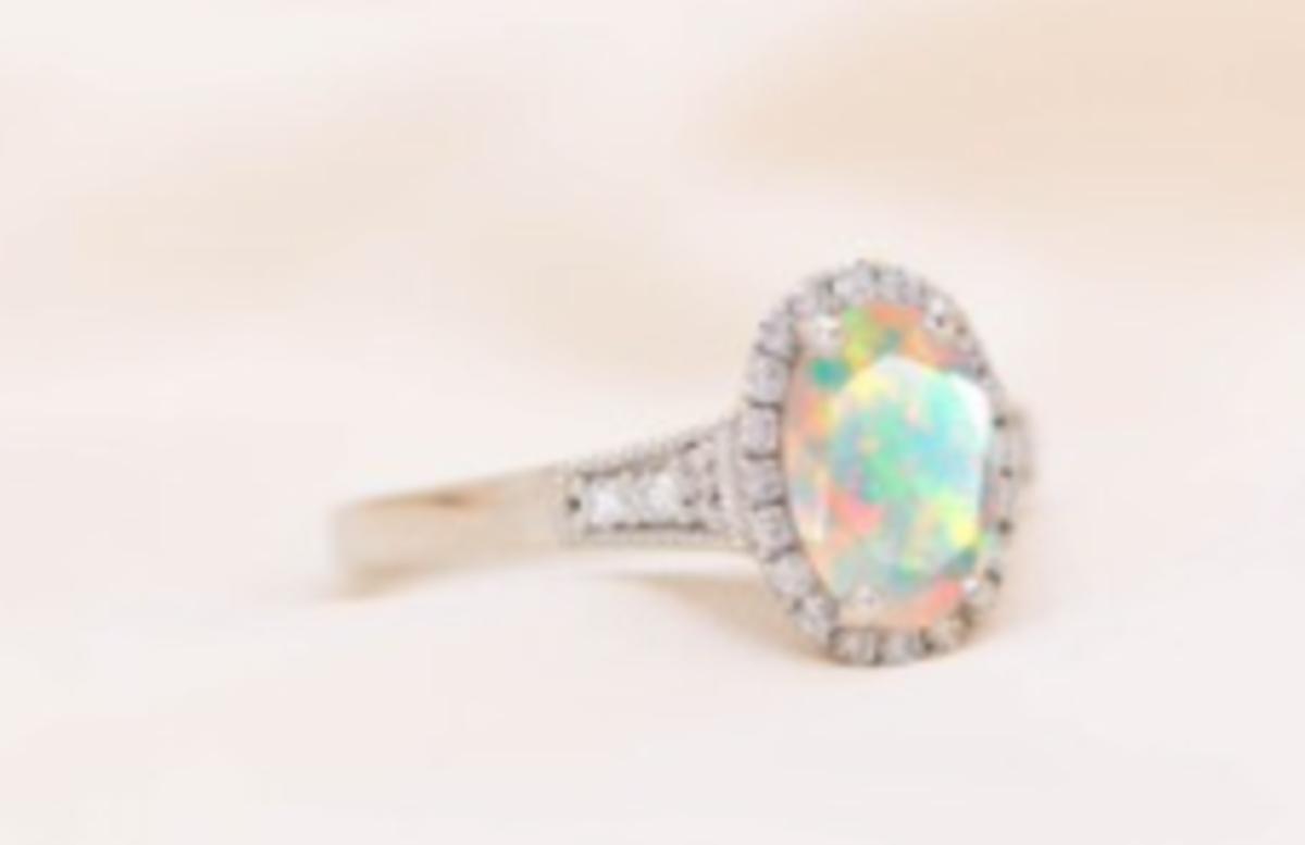 Vintage Faceted Opal 925 White Gold Ring