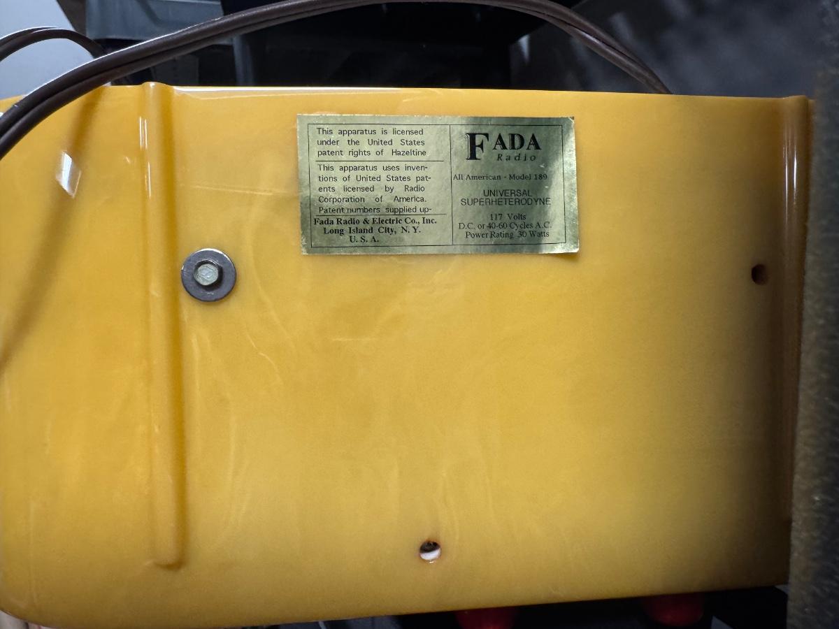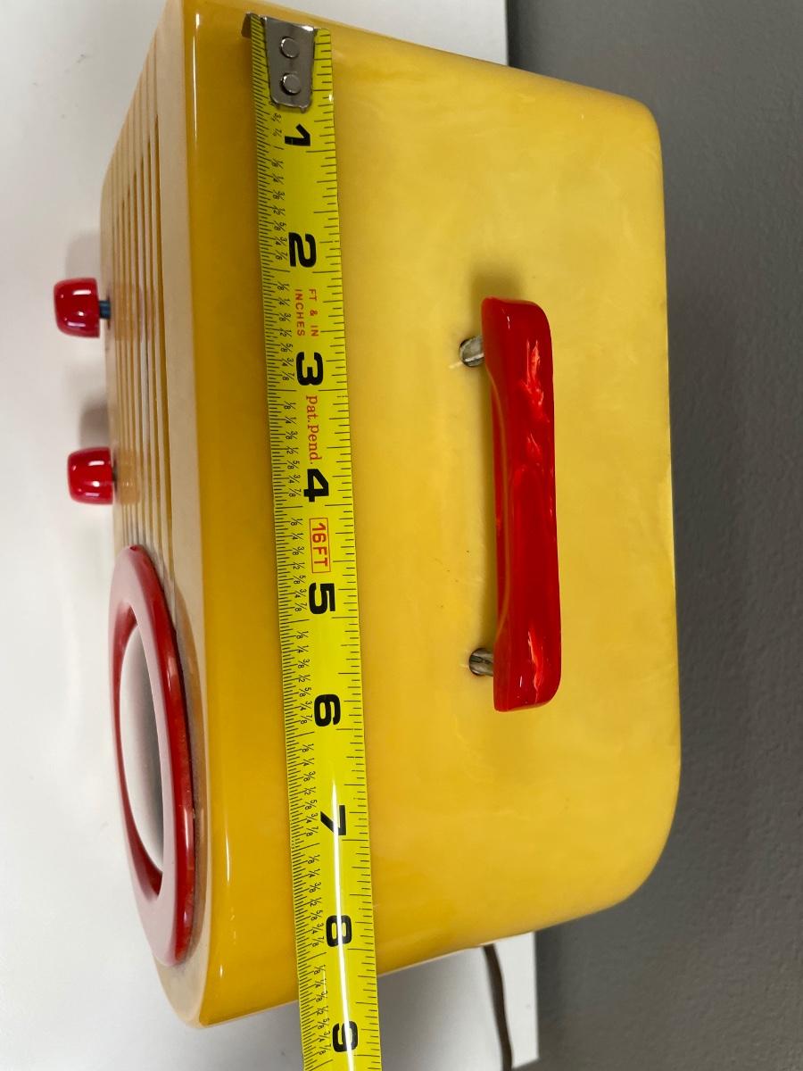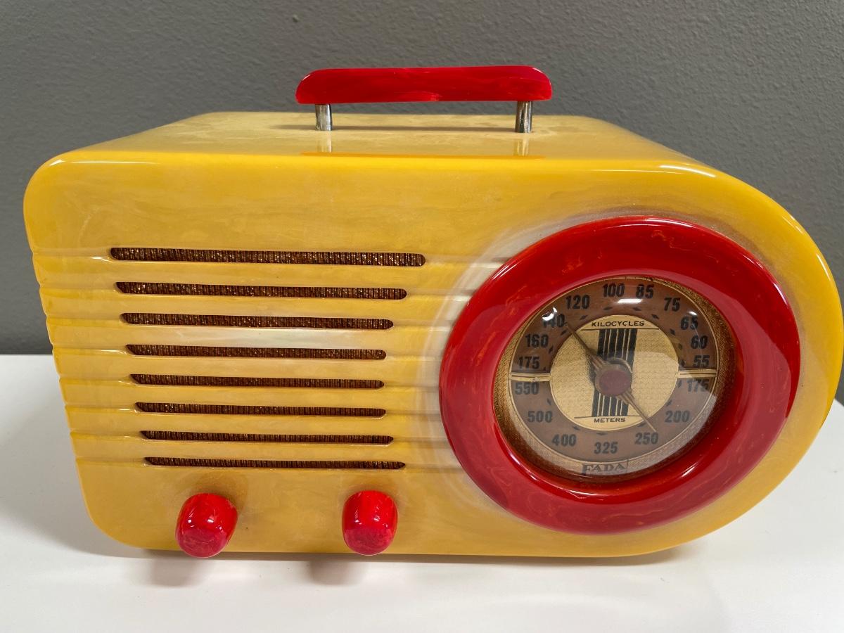 Vintage Fada Bullet Bakelite radio in orange/yellow and red