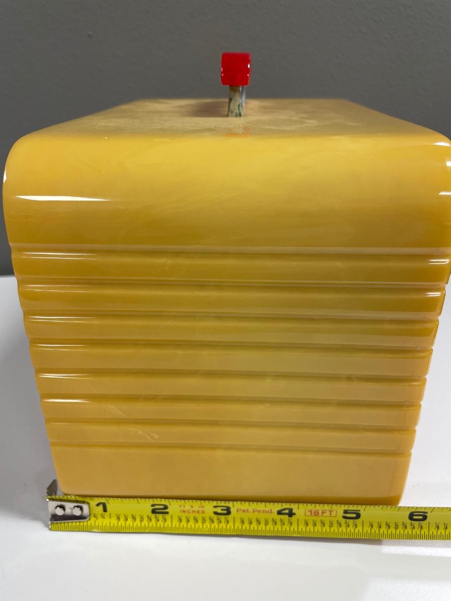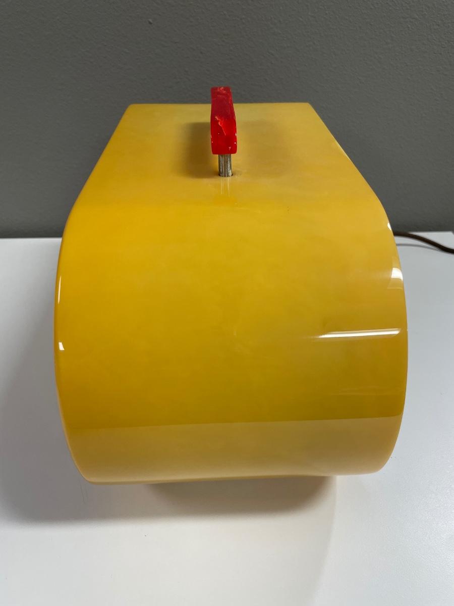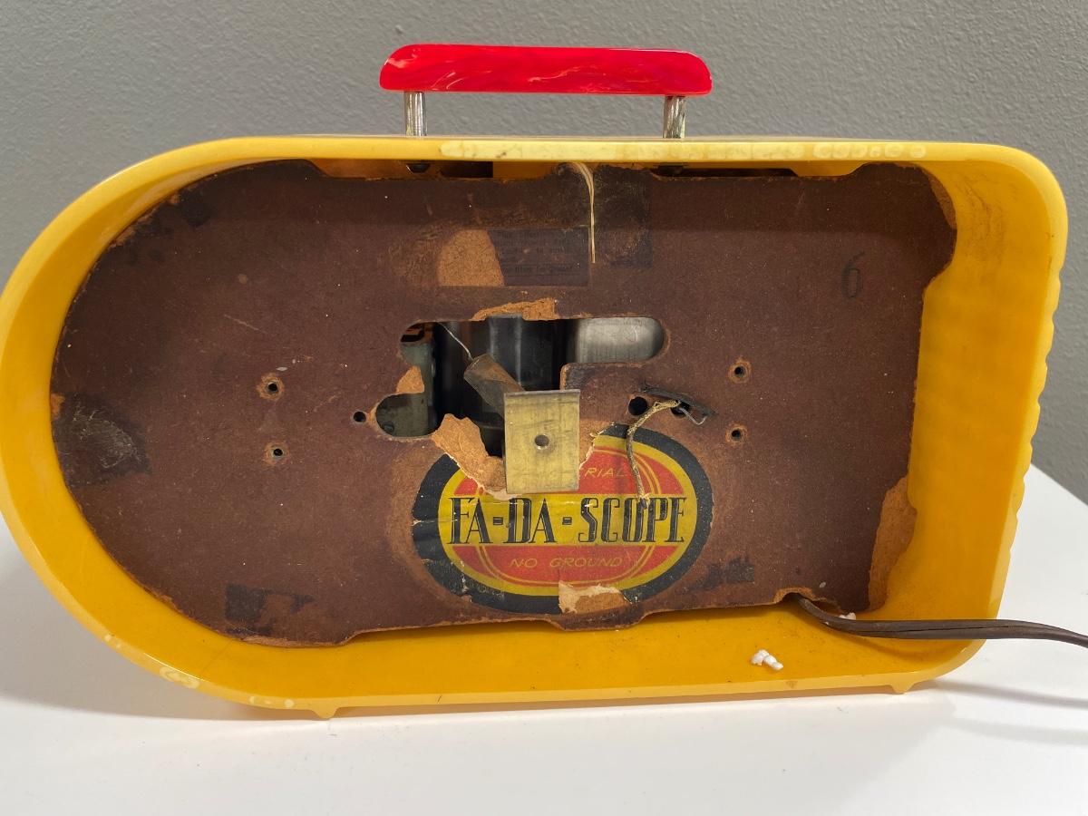 Vintage Fada Bullet Bakelite radio in orange/yellow and red