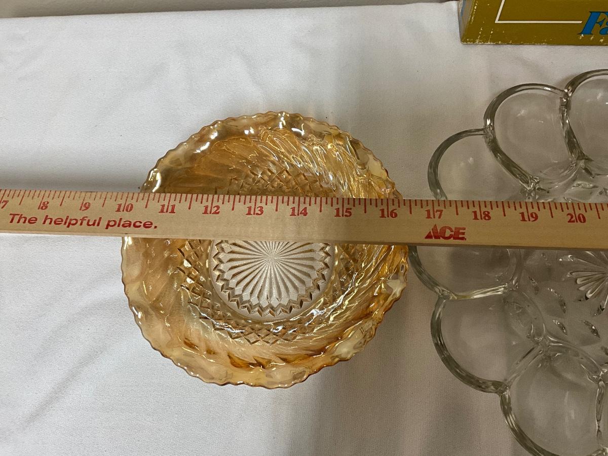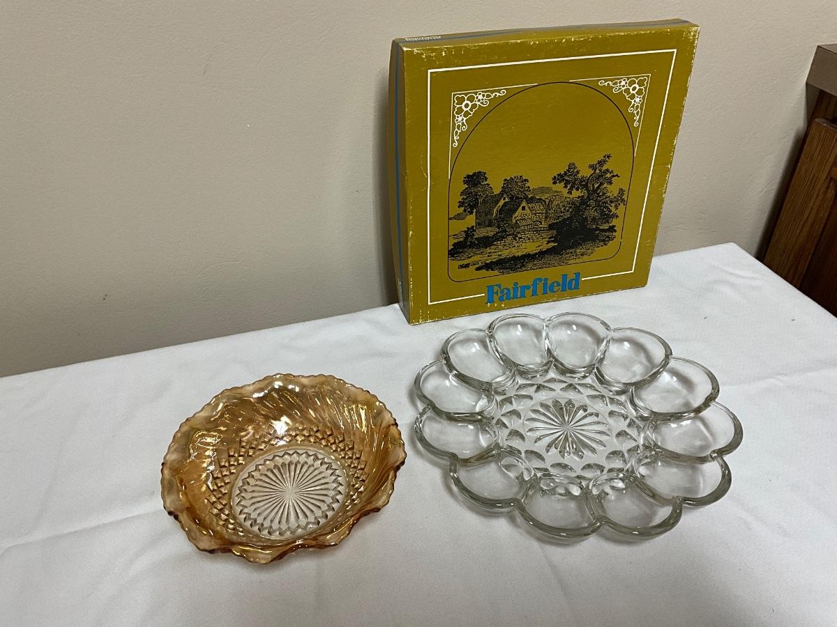 Vintage Fairfield Egg platter and vintage carnival glass bowl
