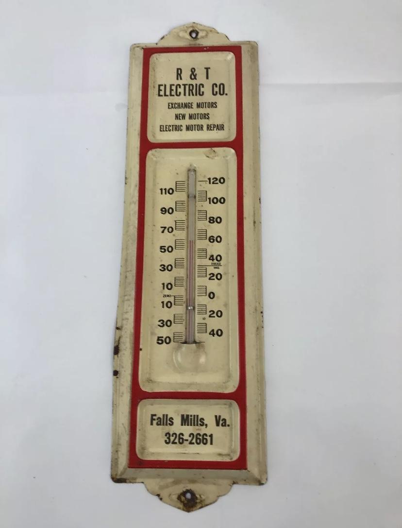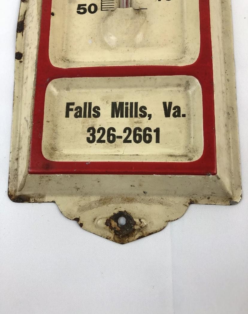 Vintage Falls Mill VA Thermometer Advertising 50’s 60’s Red Tan Working