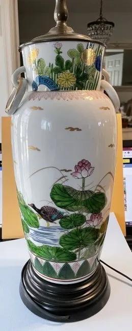 Vintage Famille Style Chinese Large Table Lamp Preowned from an Estate in VG Condition. No Shade Included. FREE Local Pickup Only by Appointment in Berlin, NJ 08009.