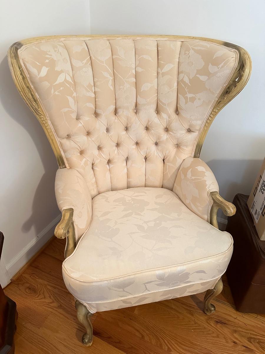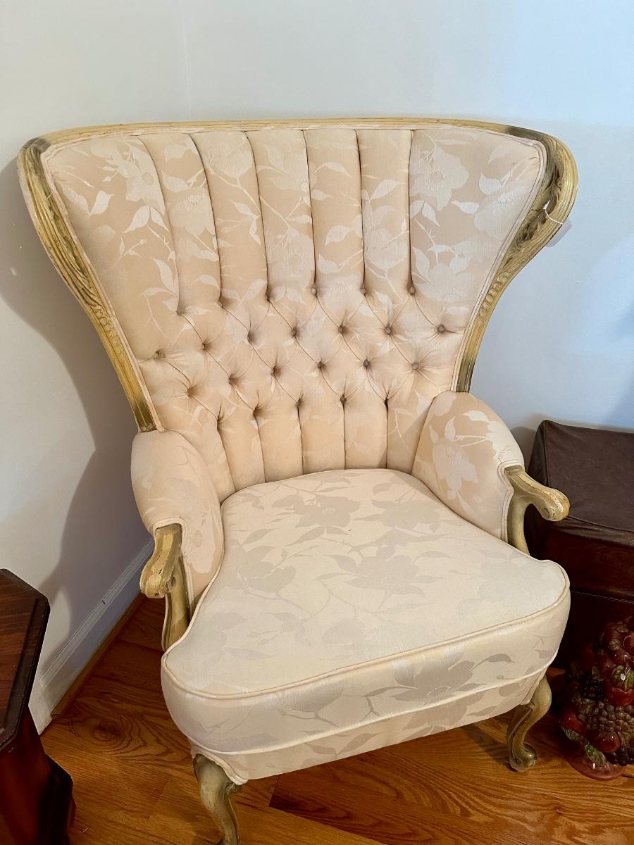 VTG FAN BACK BEIGE FRENCH STYLE CHAIR 25X31X42