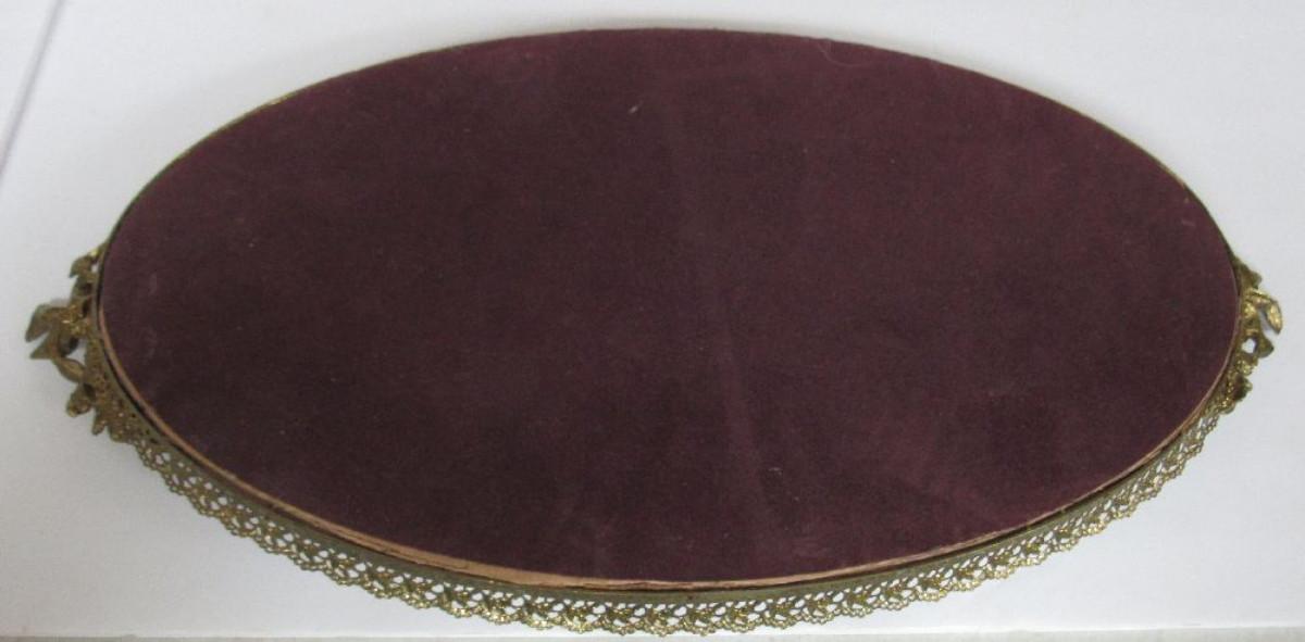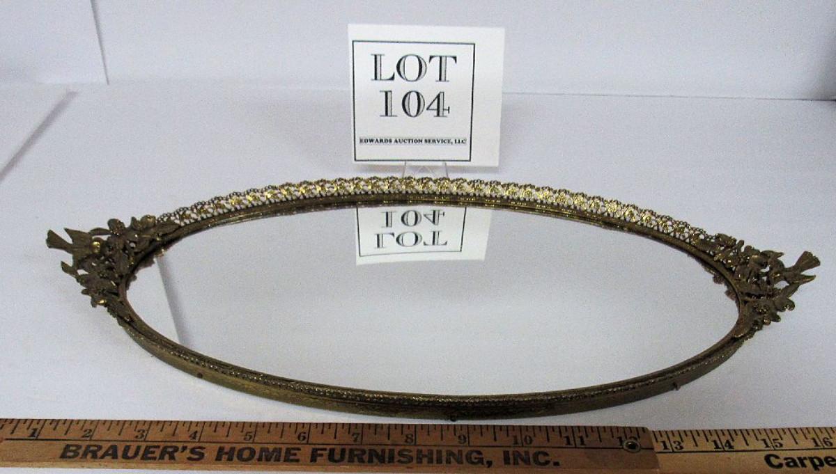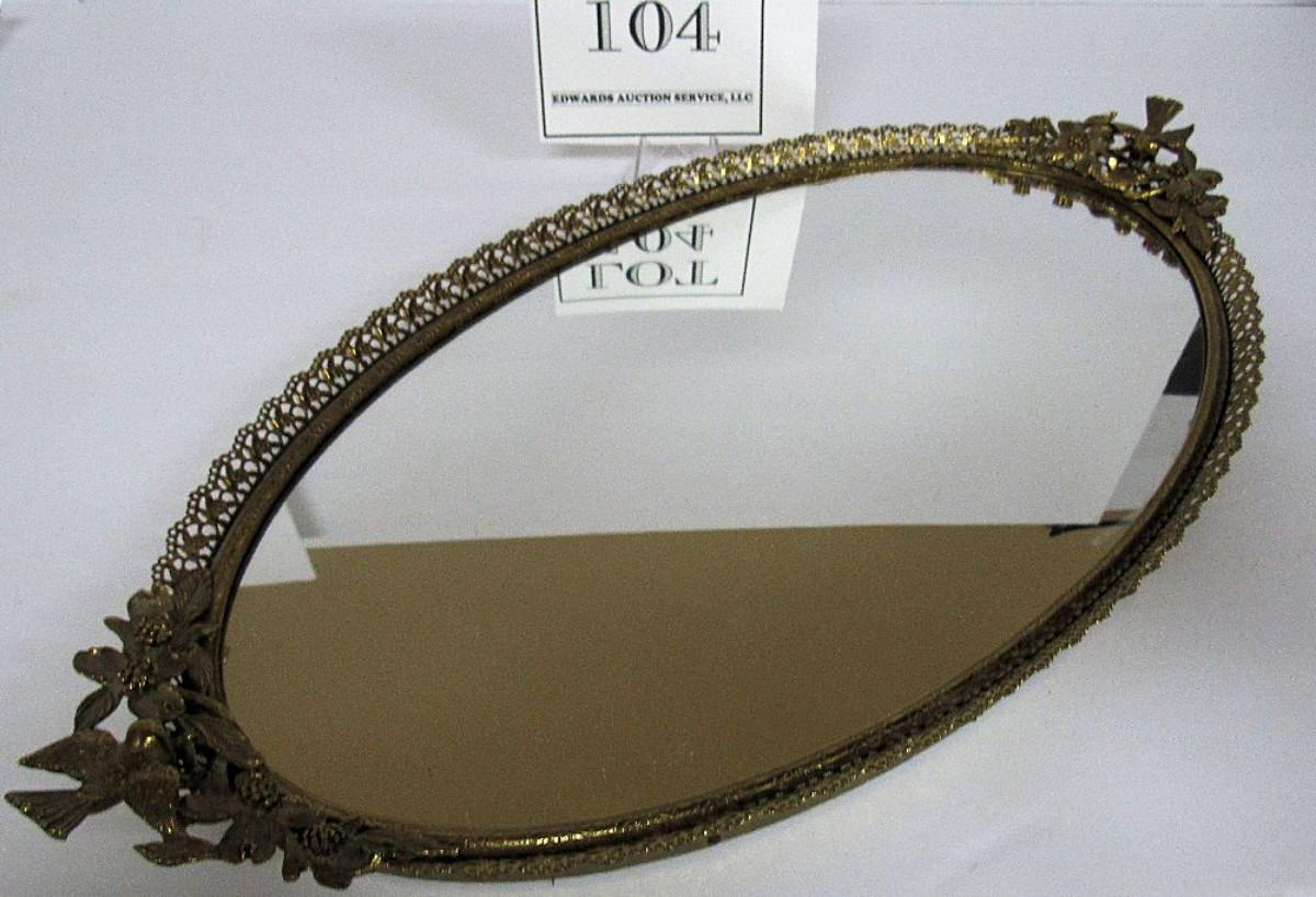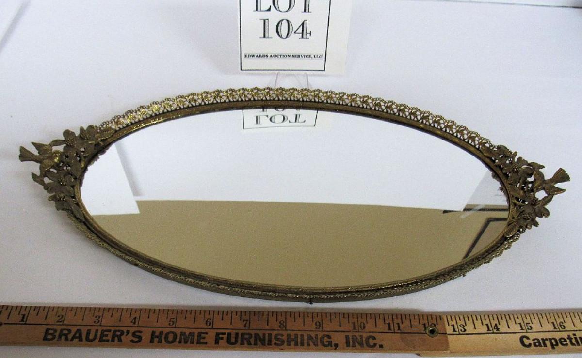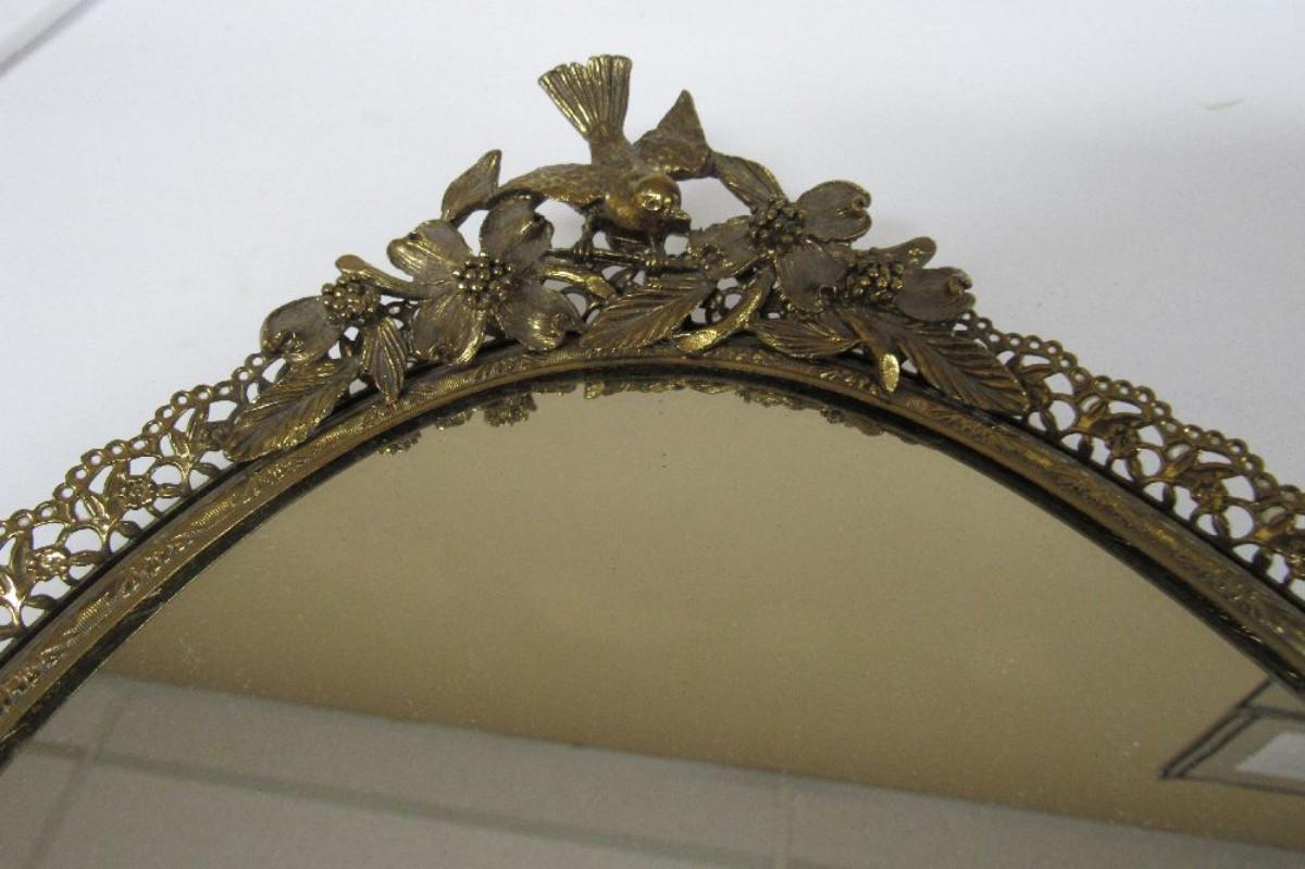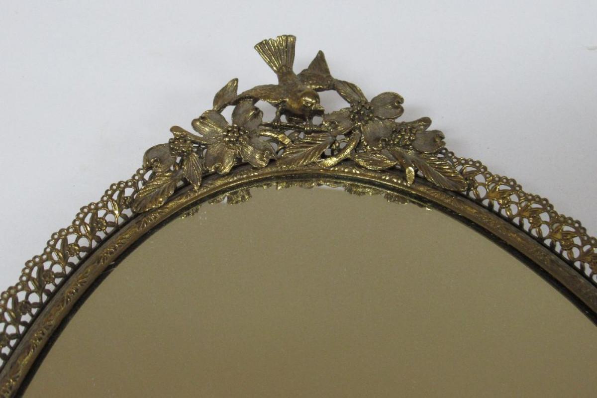 Vintage Fancy Oval Dresser Mirror With Bird Theme, Pierced Metal