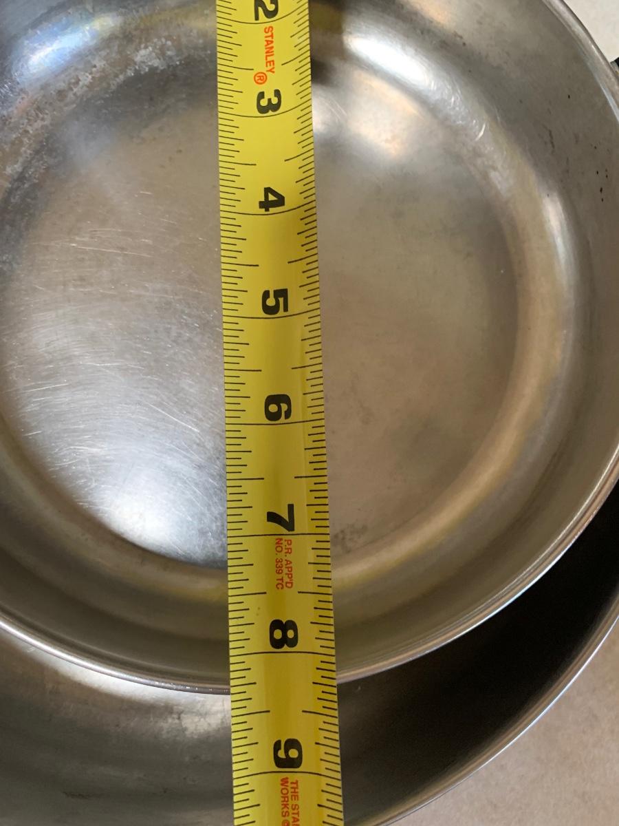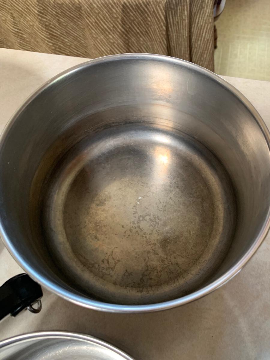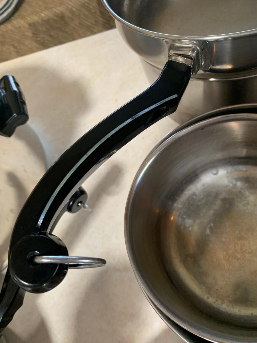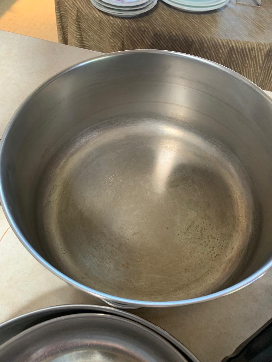 Set of 4 pots and 2 pans with lids. Used but bery good condition. Smaller pan does has handle that needs tightening