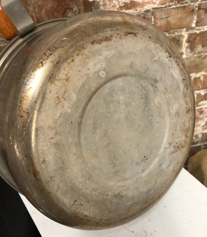 Good condition with light normal use...a FARMER'S CHOICE STOVETOP POPCORN POPPER...wood and aluminum...
