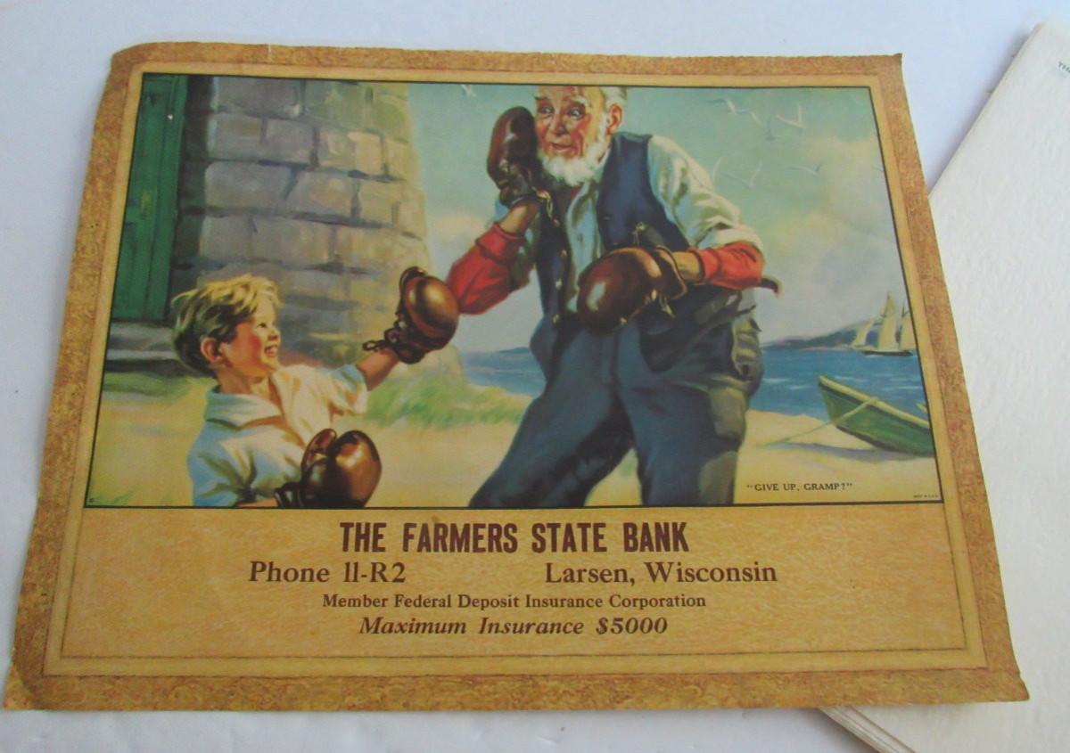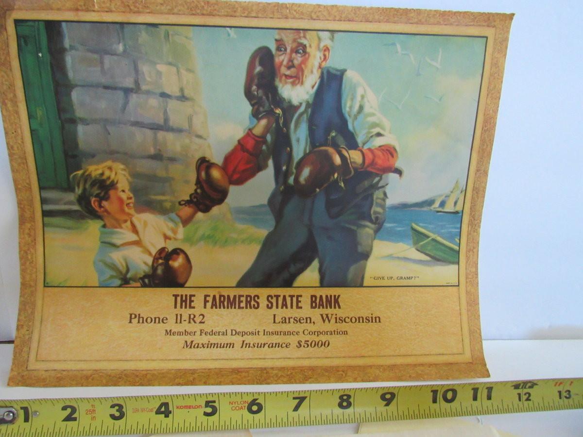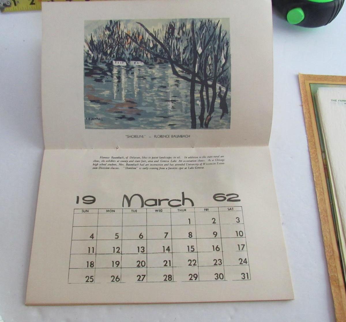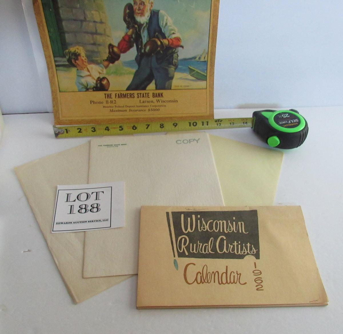 Vintage Farmer's State Bank Advertising, and Original Stationary, and 1962 WI Rural Artists Calendar