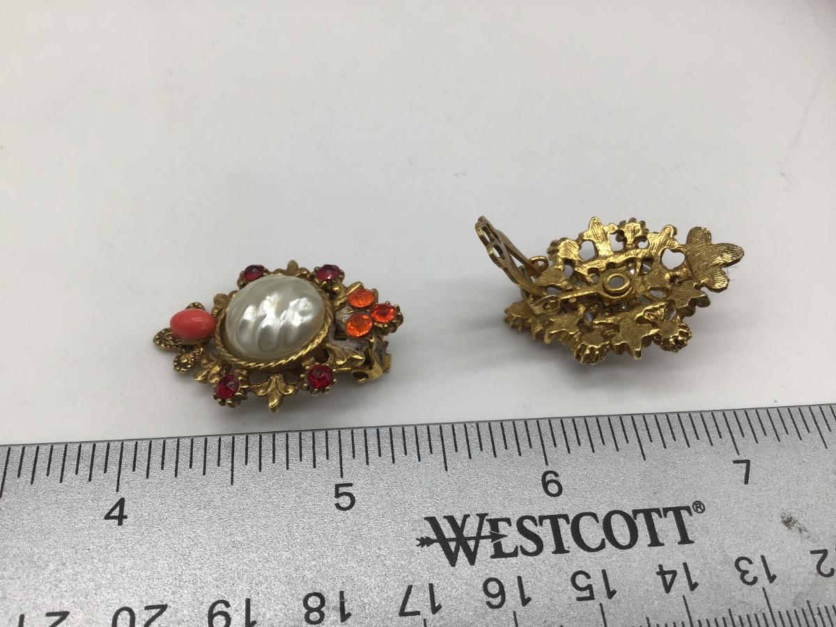 Vintage Fashion Clip on Earrings Gold Tone Multi Stones