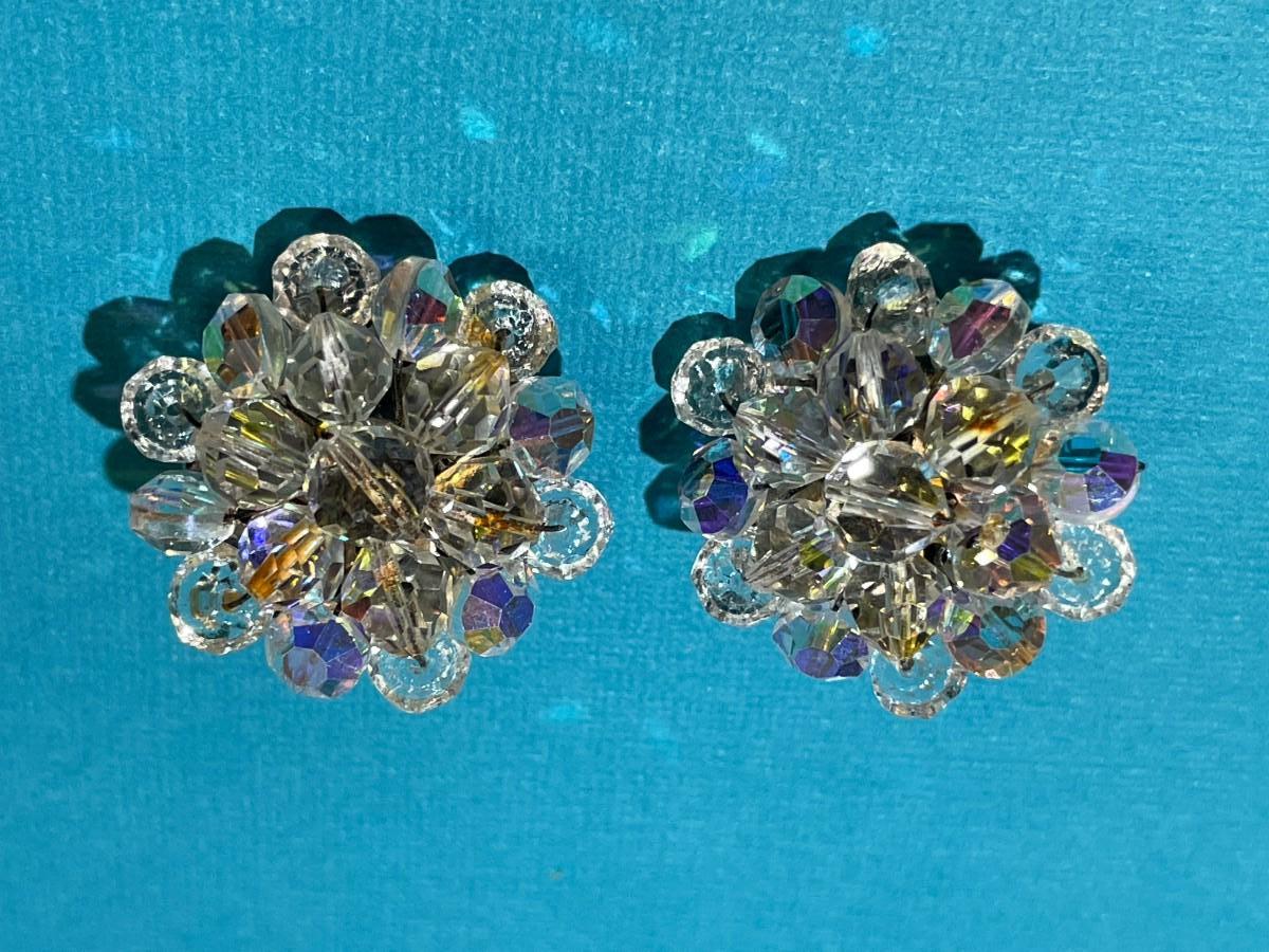 Vintage Fashion Crystal Clip=on Earrings in VG Preowned Condition as Pictured. $5 Domestic Shipping.