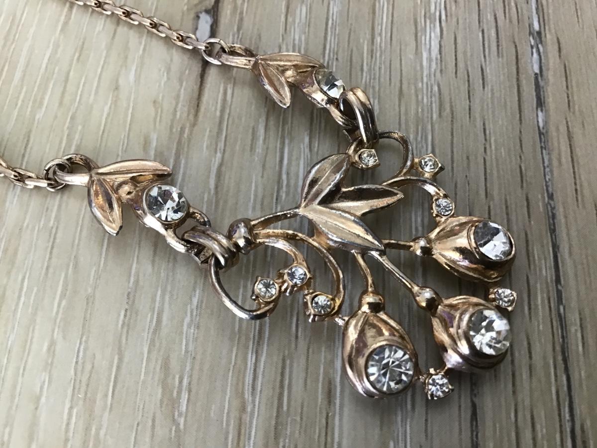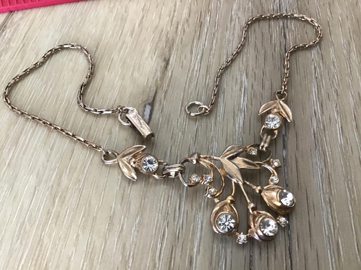 Vintage Fashion Faux Diamond Necklace Gold Tone