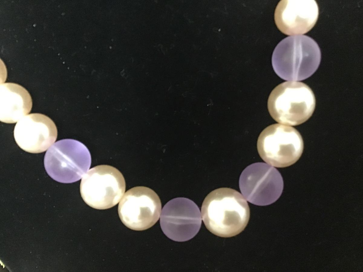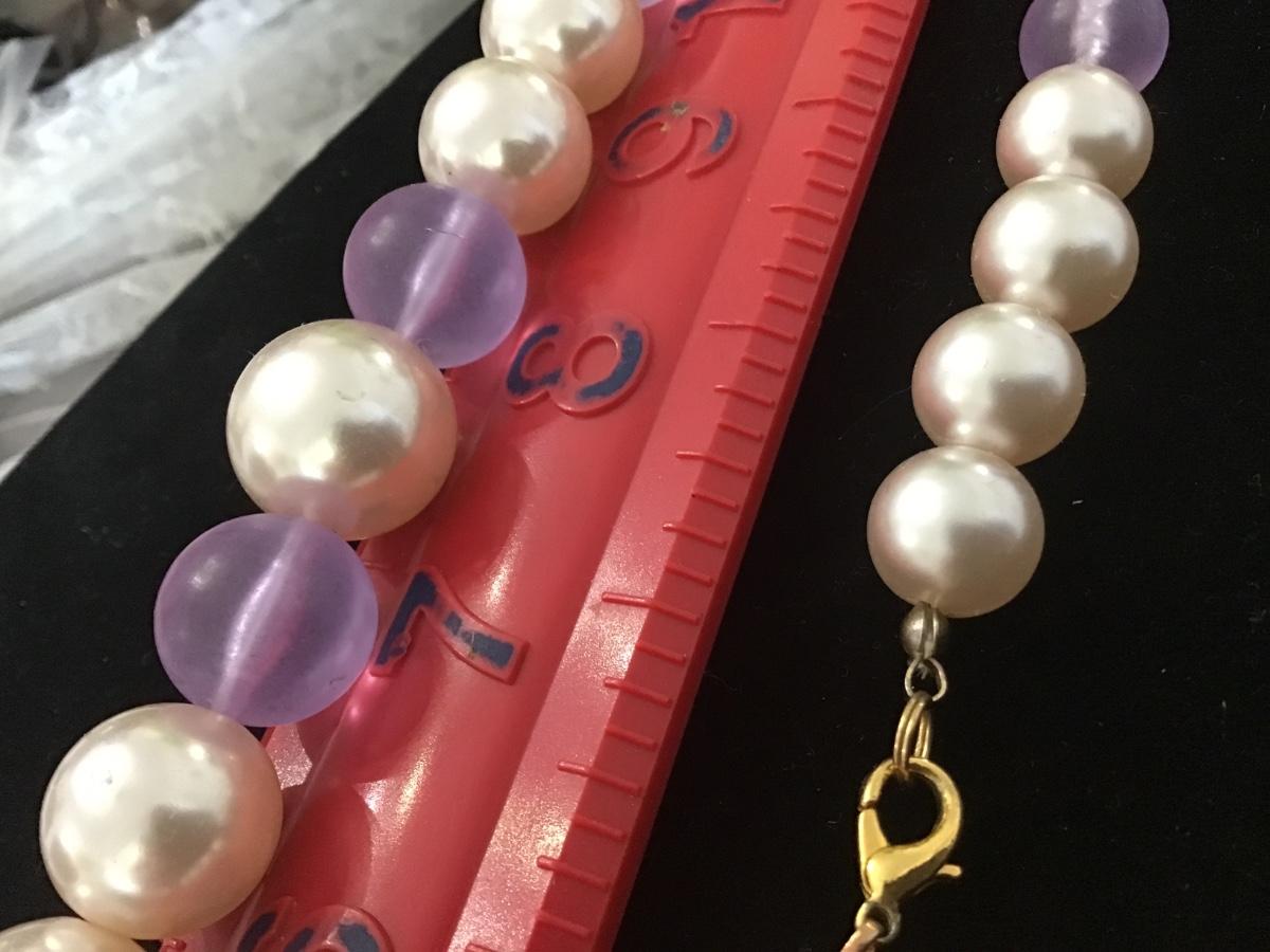 Vintage Fashion Necklace Clear Purple Beaded wit Faux Pearl