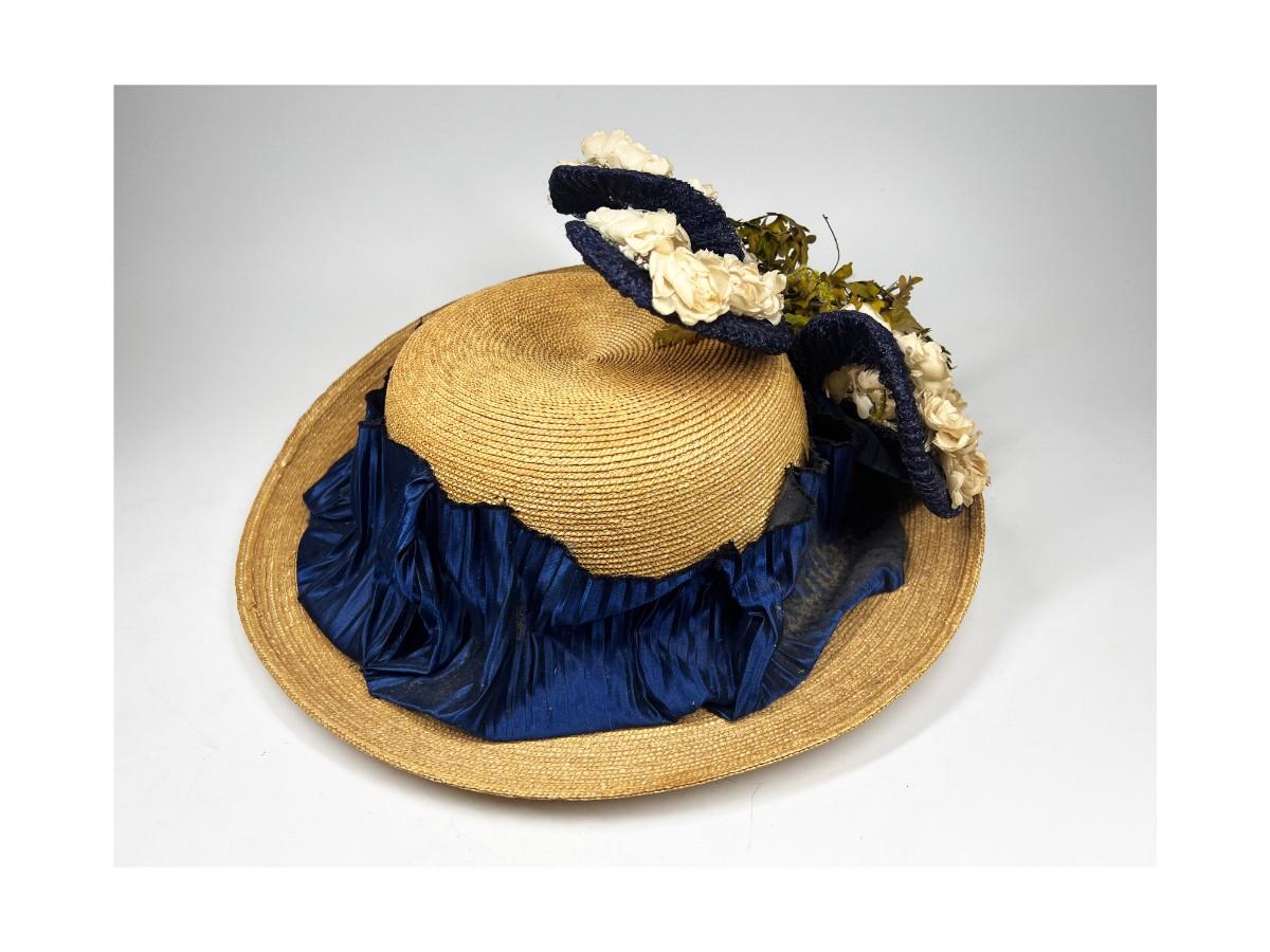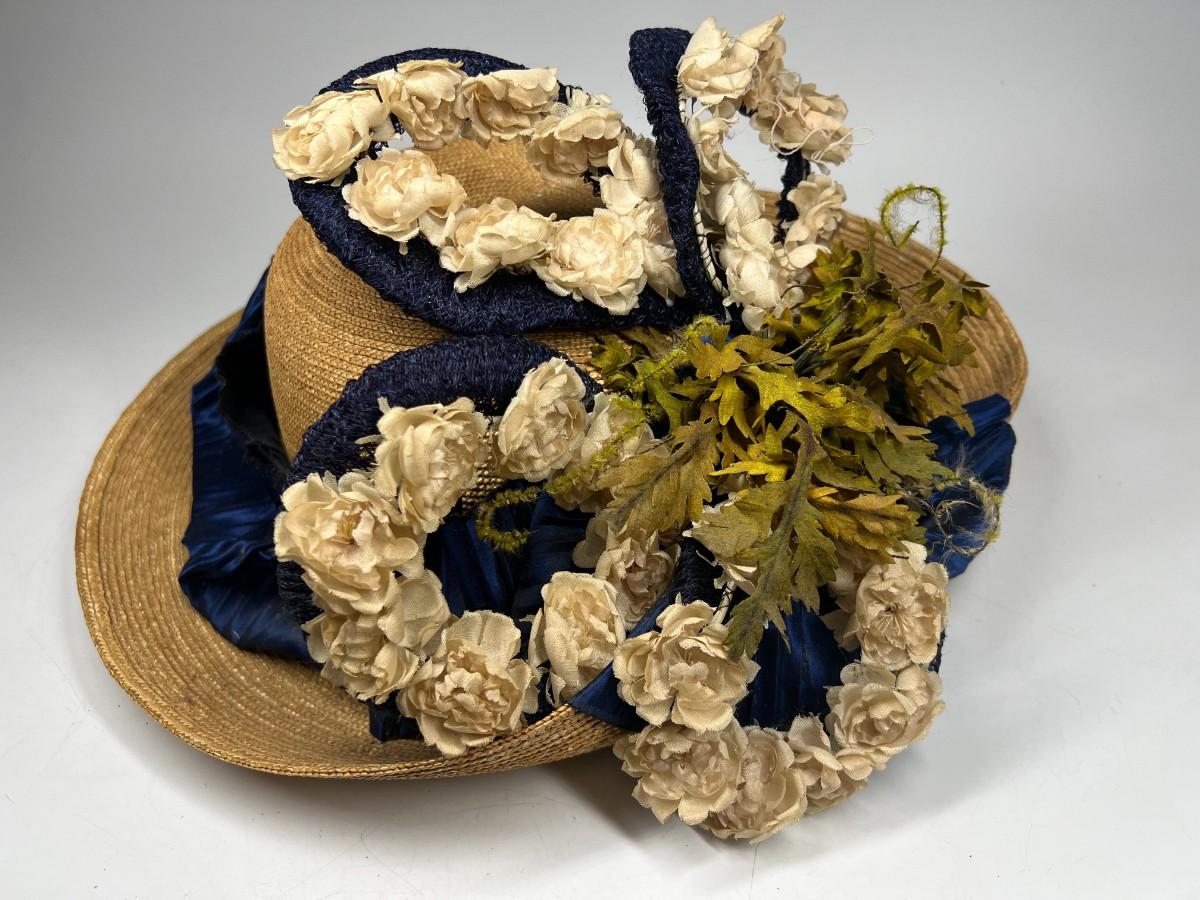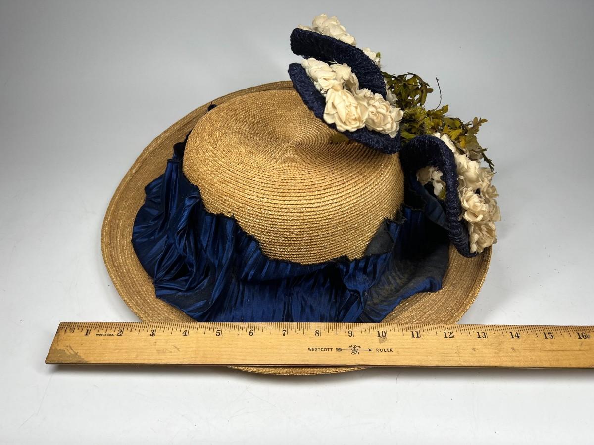 Vintage Fashionable Victorian Style Straw Sun Hat with Flower Accent