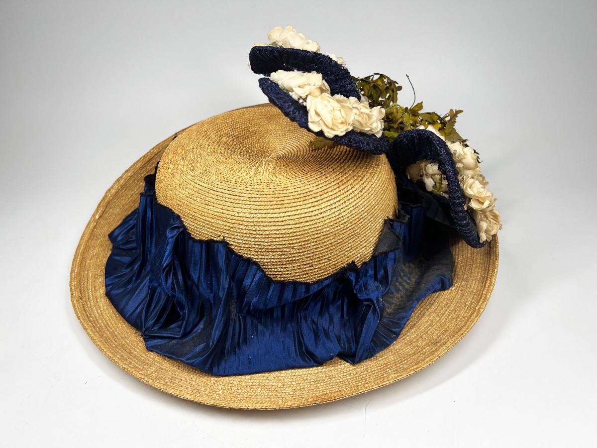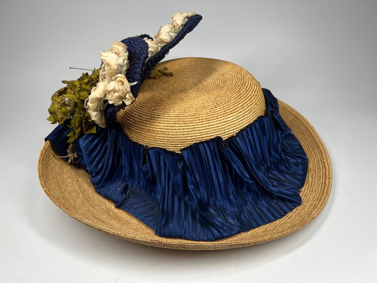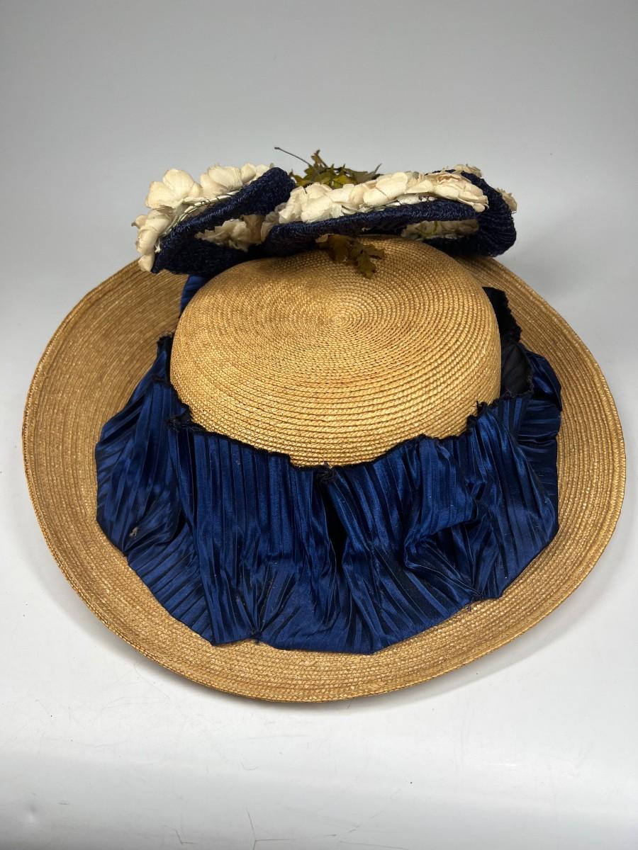 Vintage Fashionable Victorian Style Straw Sun Hat with Flower Accent