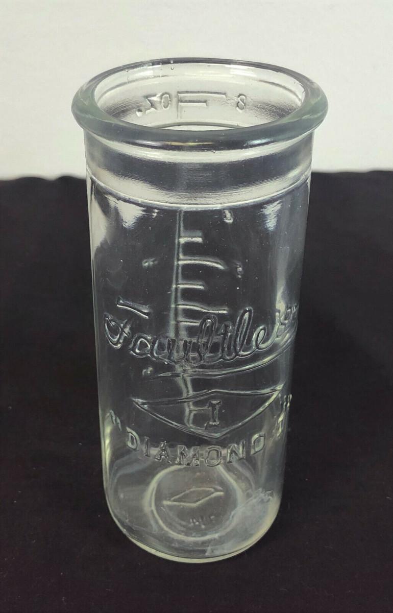 In good condition here is a vintage Faultless Diamond I baby nursing bottle..Graduated..8 ounce...5 3/8" high...2 3/8" wide.
