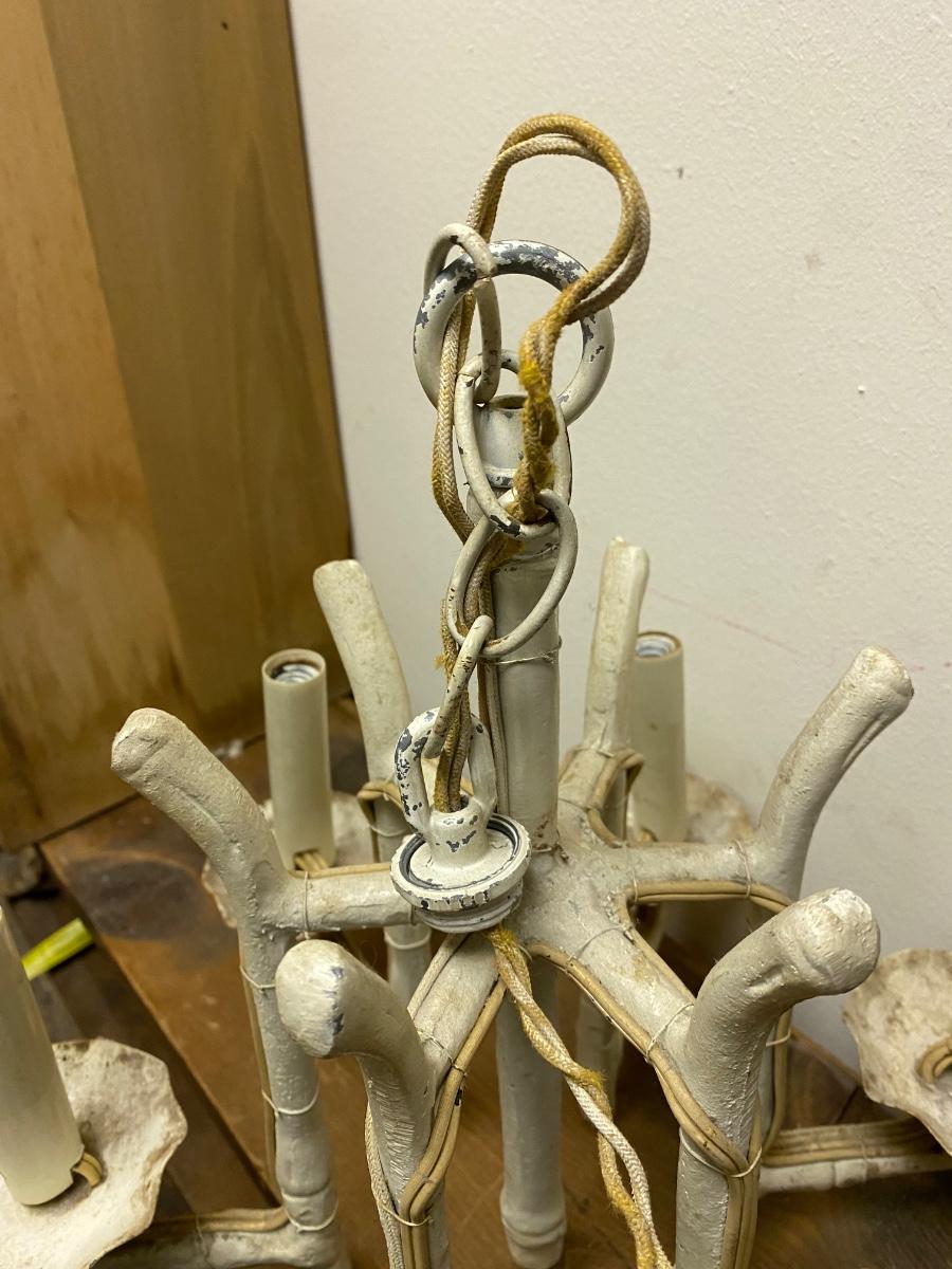 Vintage faux bamboo hangind chandelier. Solid. Of course, untested, but lovely for a smaller room or accent light. 12"H x 14Diameter