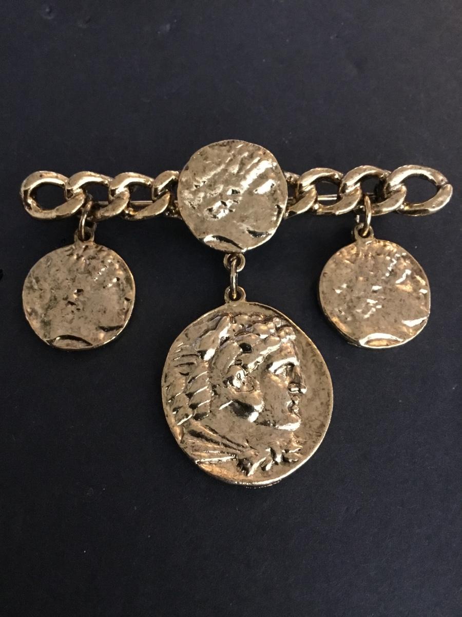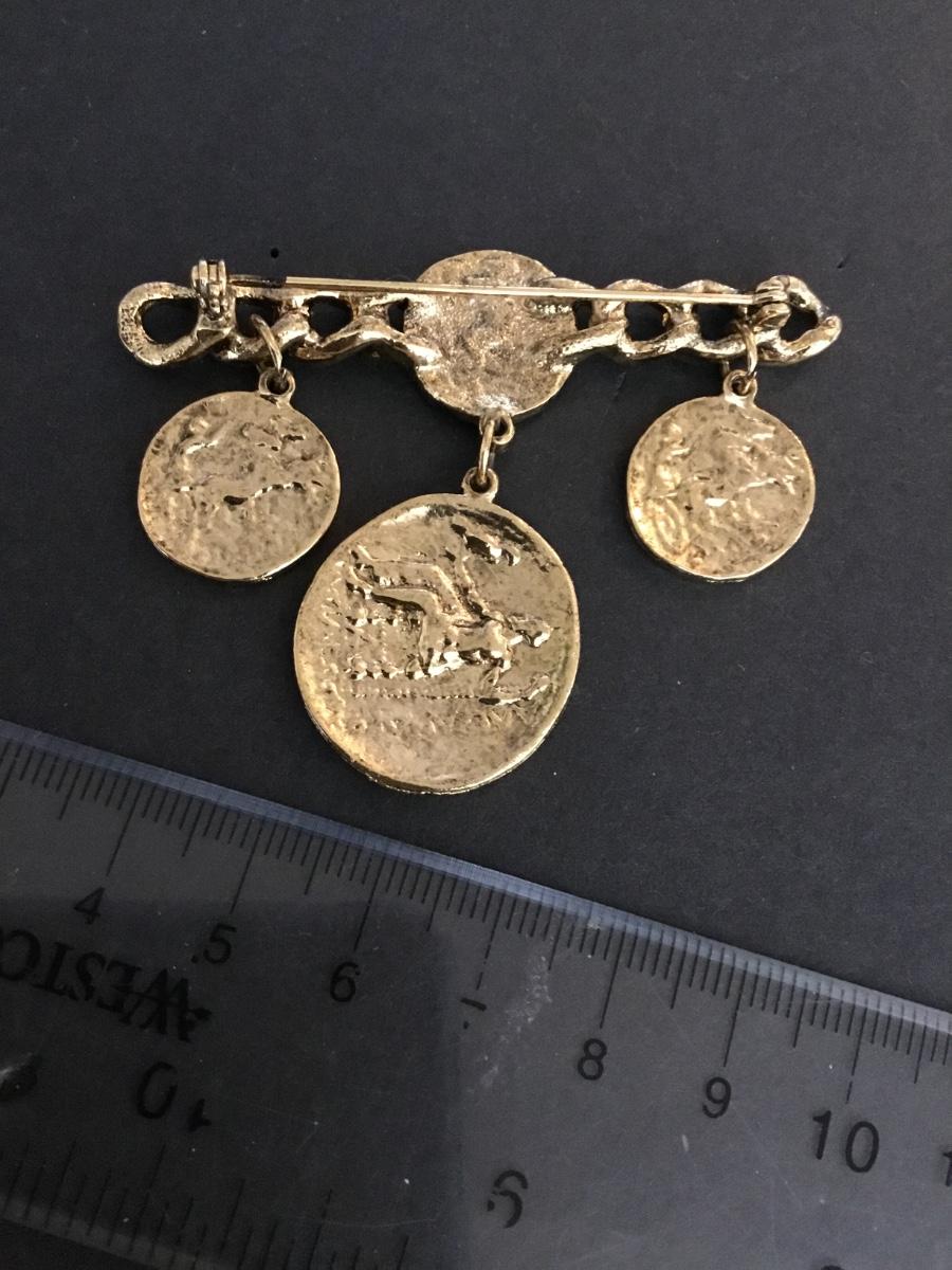 Vintage faux coin brooch gold tone