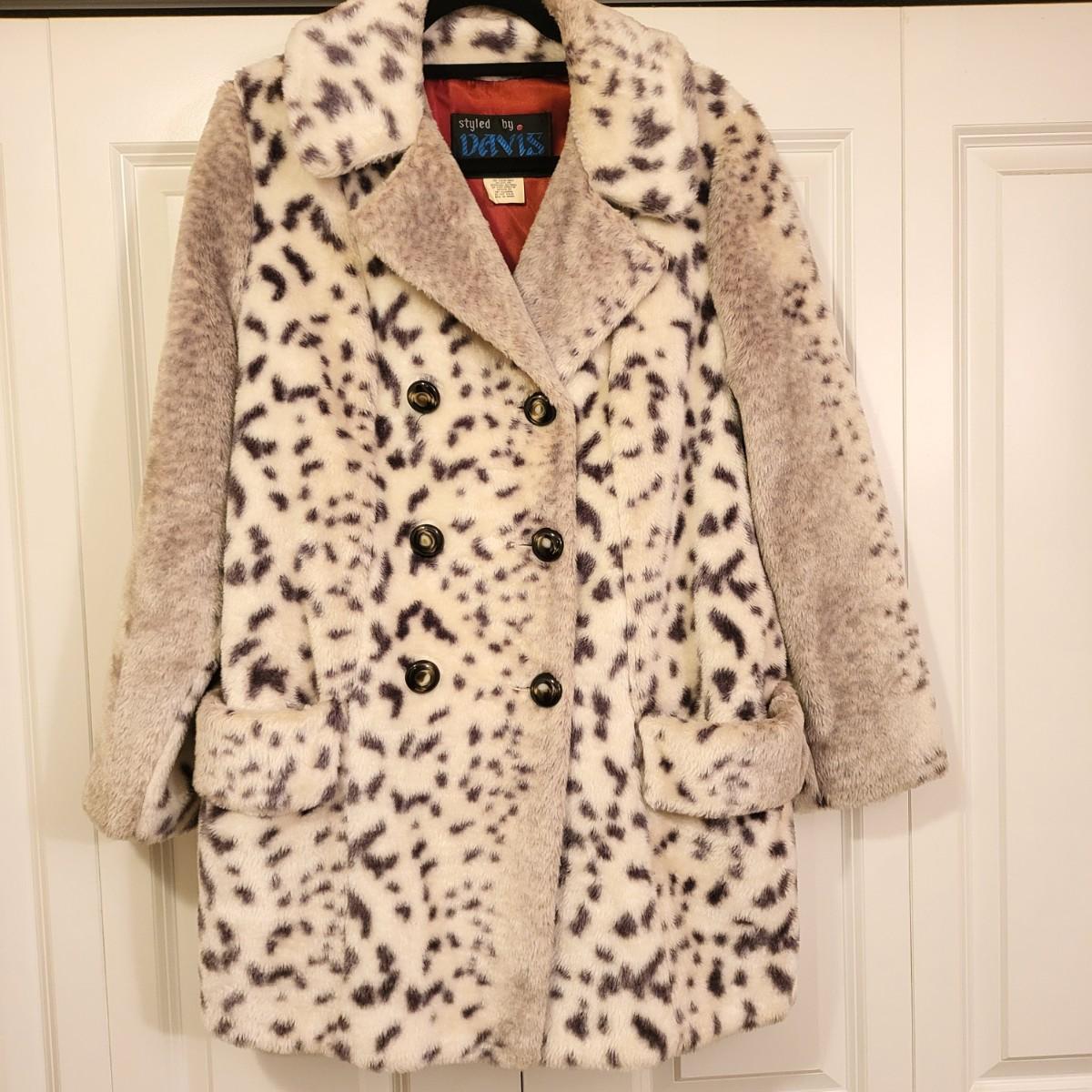 Vintage Faux Fur Spotted Coat By Davis Size Med