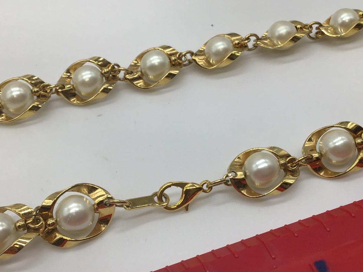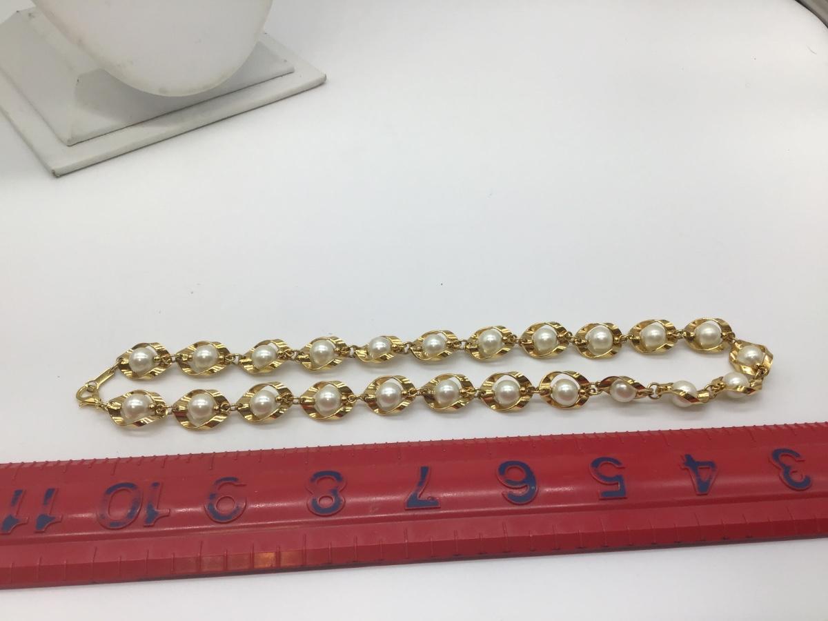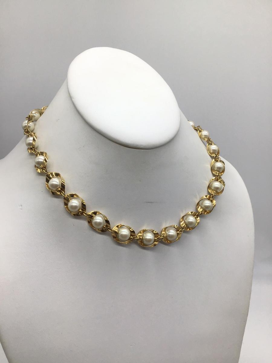 Vintage Faux Pearl and Gold Tone Twist Necklace