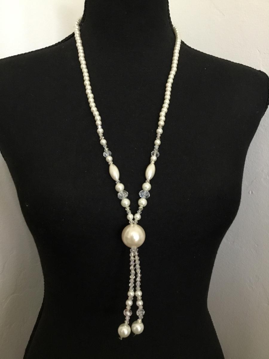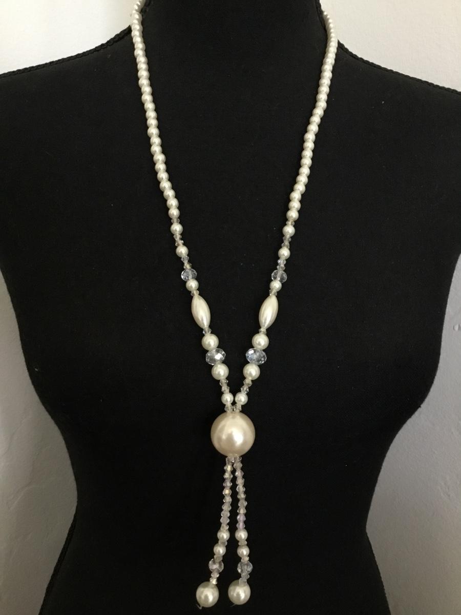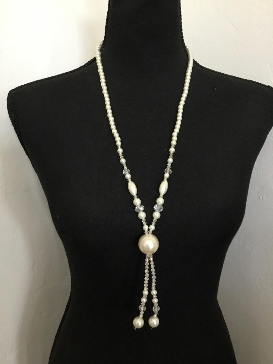 Vintage faux pearl, crystal bead, tassel necklace very beautiful