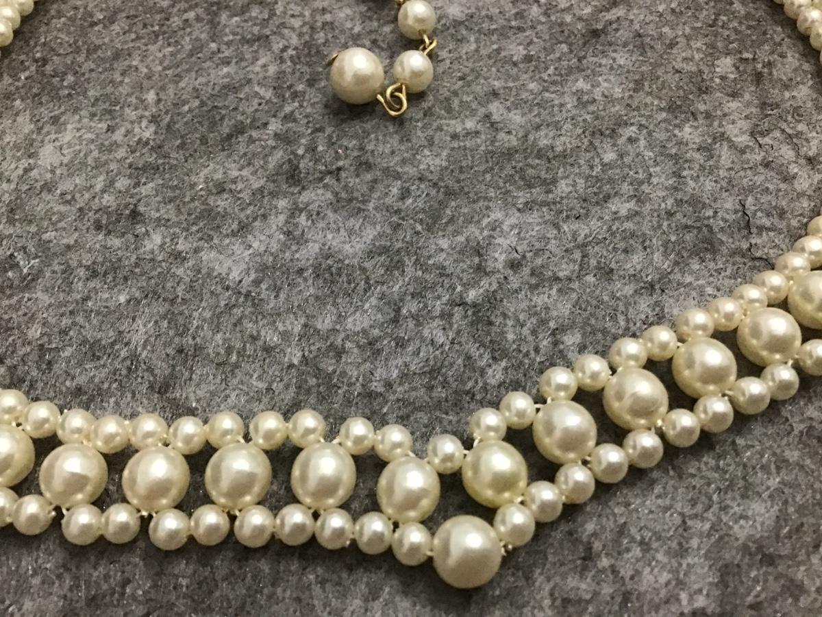 Vintage Faux Pearl Necklace Collar Adj Legnth